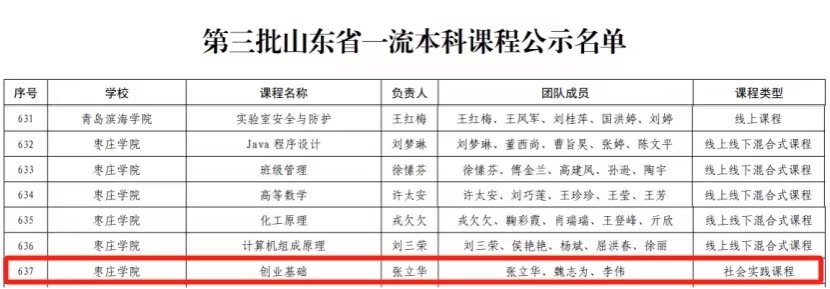 近日,山东省教育厅印发《山东省教育厅关于公布第三批山东省一流本科课程认定结果的通知》(鲁教高函〔2024〕11号),我院申报的社会实践课程《创业基础》名列其中,取得了我院省级一流本科课程建设的突破。