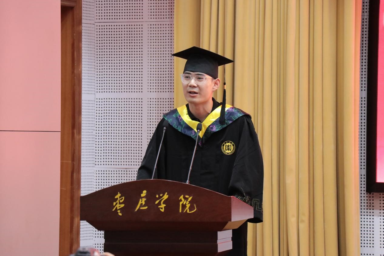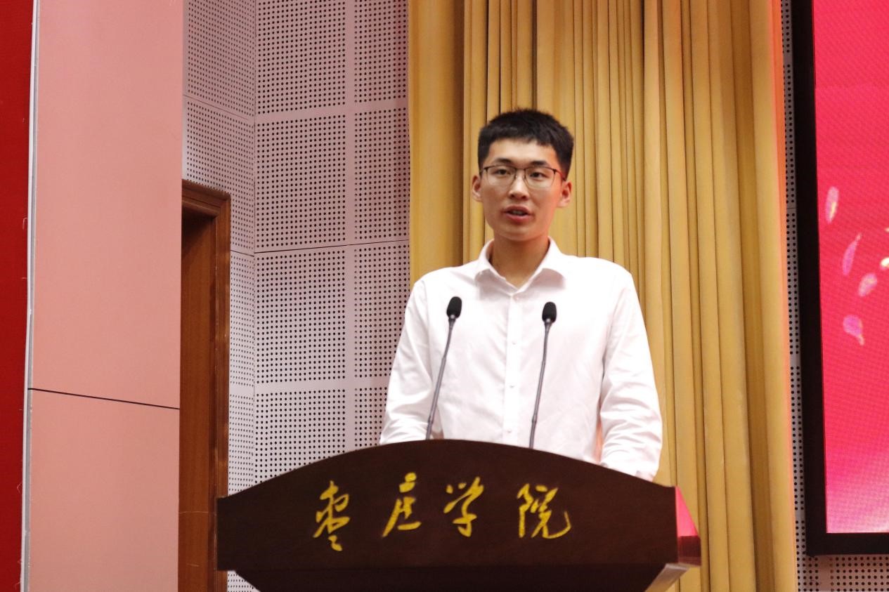 2020级制药工程(春)本科1班学生王增松代表在校生发言,向圆满完成学业,即将扬帆起航、踏上人生新征程的学长们表达了衷心祝贺和深深祝福,表示将以师哥师姐为榜样,传承与时代同频共振的家国情怀,续写敢于担当的奋斗故事。同时,他感谢学长们在学习生活上的引导和帮扶,并表示将以学长们为榜样,以榜样的力量发扬学院“传承创新,追求卓越”的精神,接续努力。