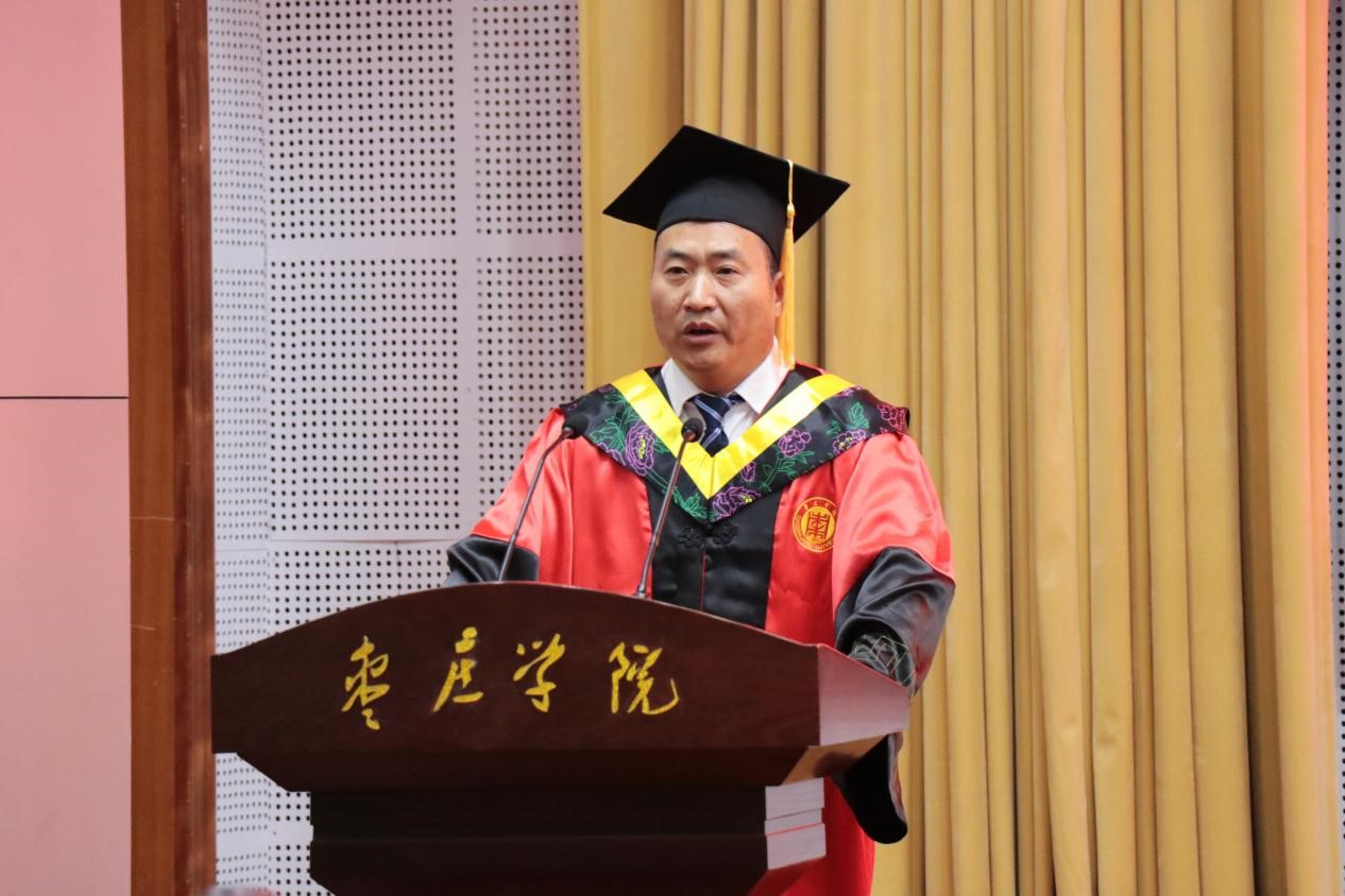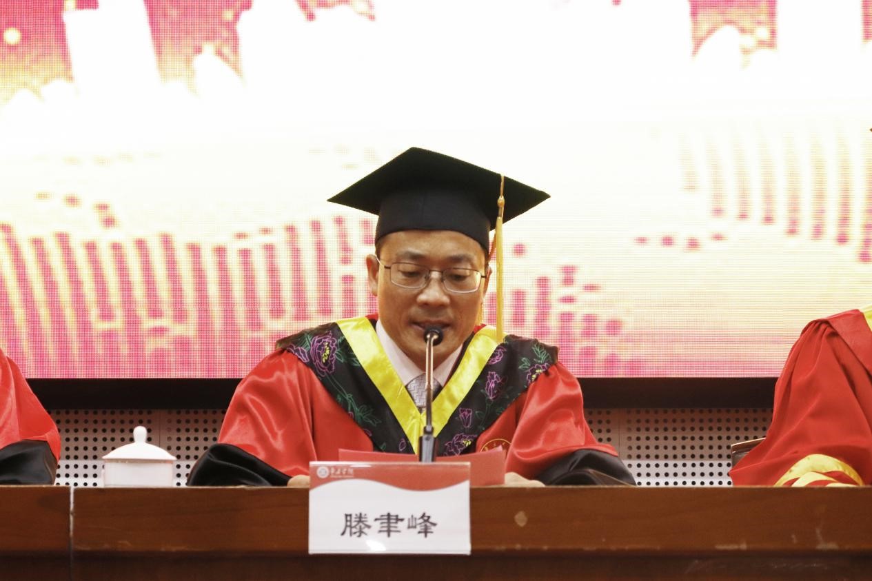 院长张立华代表学院进行致辞。他对同学们四年的勤奋给予了充分肯定,对同学们取得的成就和进步充满了自豪,并向所有毕业生表示祝贺,送上毕业祝福。他嘱托同学们,树高千尺有根,水流万里有源,不管走到哪里,都不要忘记父母的养育之恩、母校的教育之情,更不能忘记国家的培养之义。要紧跟时代发展大势,在干事创业一线、在科技攻关前沿、在基层边远地区、在民族边疆地区,自找苦吃、扎根奋斗、追求卓越,跨千山暮雪、观万里层云,收获诗和远方。