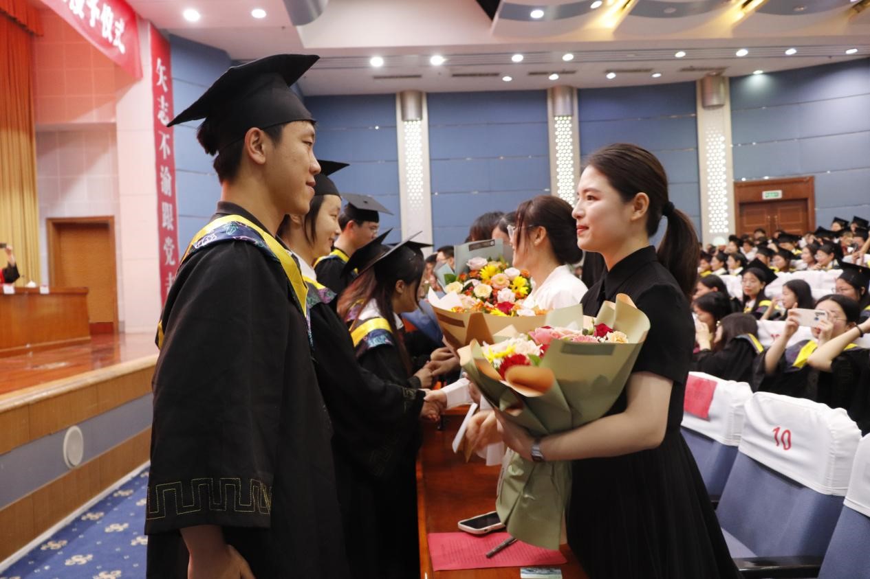 四年悠悠,学途漫漫。为感谢老师的辛勤培育,毕业生代表为教师代表敬献鲜花,与老师们倾心话别。