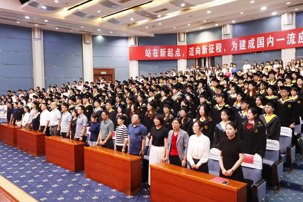 六月蝉鸣又起,青衿之志可期。6月18日上午,beat365平台唯一官网2023届毕业典礼暨学士学位授予仪式,在市中校区综合楼报告厅隆重举行。校党委副书记、校长李文喜,学生工作处处长王维忠,学院党政领导、教师代表、235名毕业生,及在校学生代表共400余参加仪式。仪式由学院党总支副书记周玉亮主持。