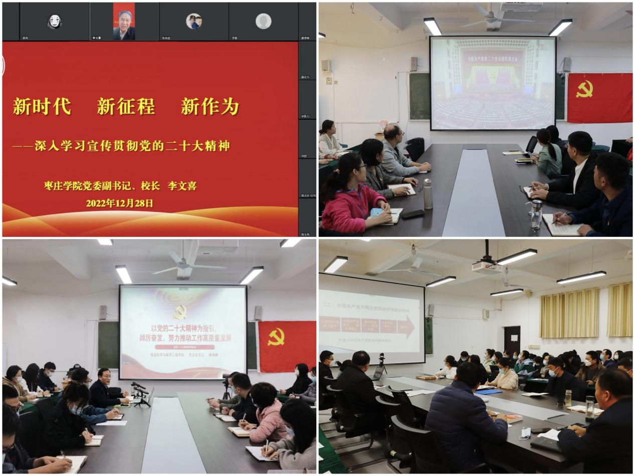 10月16日至22日,学院积极组织广大师生通过多种方式收听收看开幕会、闭幕会直播,学习热议党的二十大精神。随后,根据学校党委统一部署,结合学院工作实际,出台《beat365平台唯一官网学习宣传贯彻党的二十大精神工作实施方案》,制定宣讲计划,开展学习培训,分层分类,有效推动党的二十大精神入脑入心。12月28日,校党委副书记、校长李文喜为学院全体教师党员作了题为《新时代 新征程 新作为——深入学习宣传贯彻党的二十大精神》的宣讲报告,学院领导班子开展系列宣讲活动4次,受众师生1000余人次,着力推进舆论宣传和理论研究阐释,切实把学习成果转化为推动学院各项事业高质量发展的实际成效。