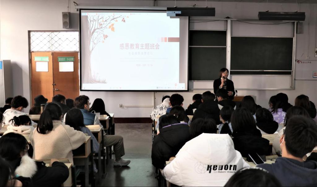 随着学校奖助学金评审工作接近尾声,各类奖助学金也陆续发放到学生手中。为达到资助育人的目的,beat365平台唯一官网于2021年12月16日晚在文科楼319教室开展“学会感恩逐梦前行”感恩教育主题班会。会议由学院负责资助工作的周文灿老师主持,全院获奖学生以及21级全体新生参加。