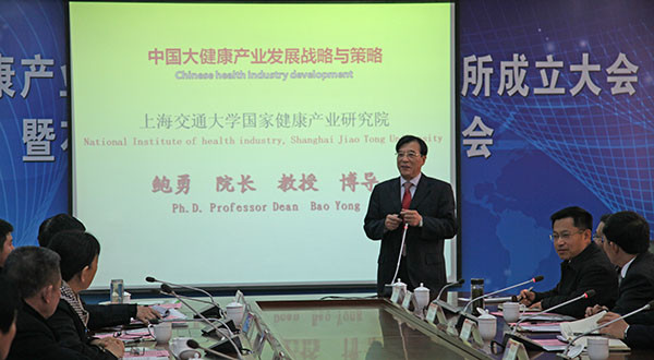 揭牌仪式后,随即举行了石榴与健康产业发展研讨会。会上,上海交通大学国家健康产业研究院院长、博士生导师鲍勇教授作了主题为“中国大健康产业发展战略与策略”的报告。分享交流了中国大健康产业发展的背景,中国大健康产业发展的政治条件,大健康产业的现状,国家健康产业研究院宗旨、发展规划、科学研究方向等。他指出,国家健康产业研究院以国家新医改和国务院健康服务业发展为纲领,以公共卫生三个主要领域:改善健康、维护健康以及改善健康服务的质量为宗旨,以偱证健康产业和管理方法为基础,进行健康产业和管理模式、机制、评价研究。他提出“健康枣庄”的概念,并希望在该理念下,成立大健康产业园。