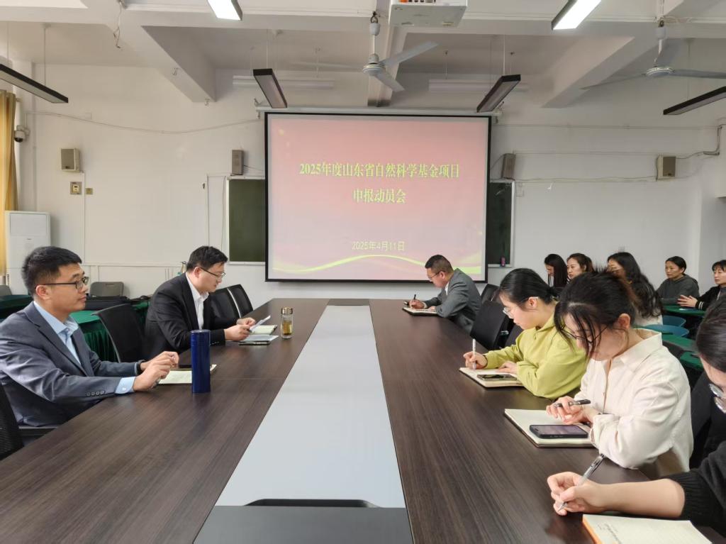 为进一步提升科研项目申报质量,推动学院科研工作高质量发展,4月11日下午,beat365平台唯一官网在文科楼213召开2025年度山东省自然科学基金项目申报动员会。院长王京龙出席会议,学院2025年度山东省自然科学基金全体拟申报人员参加会议。