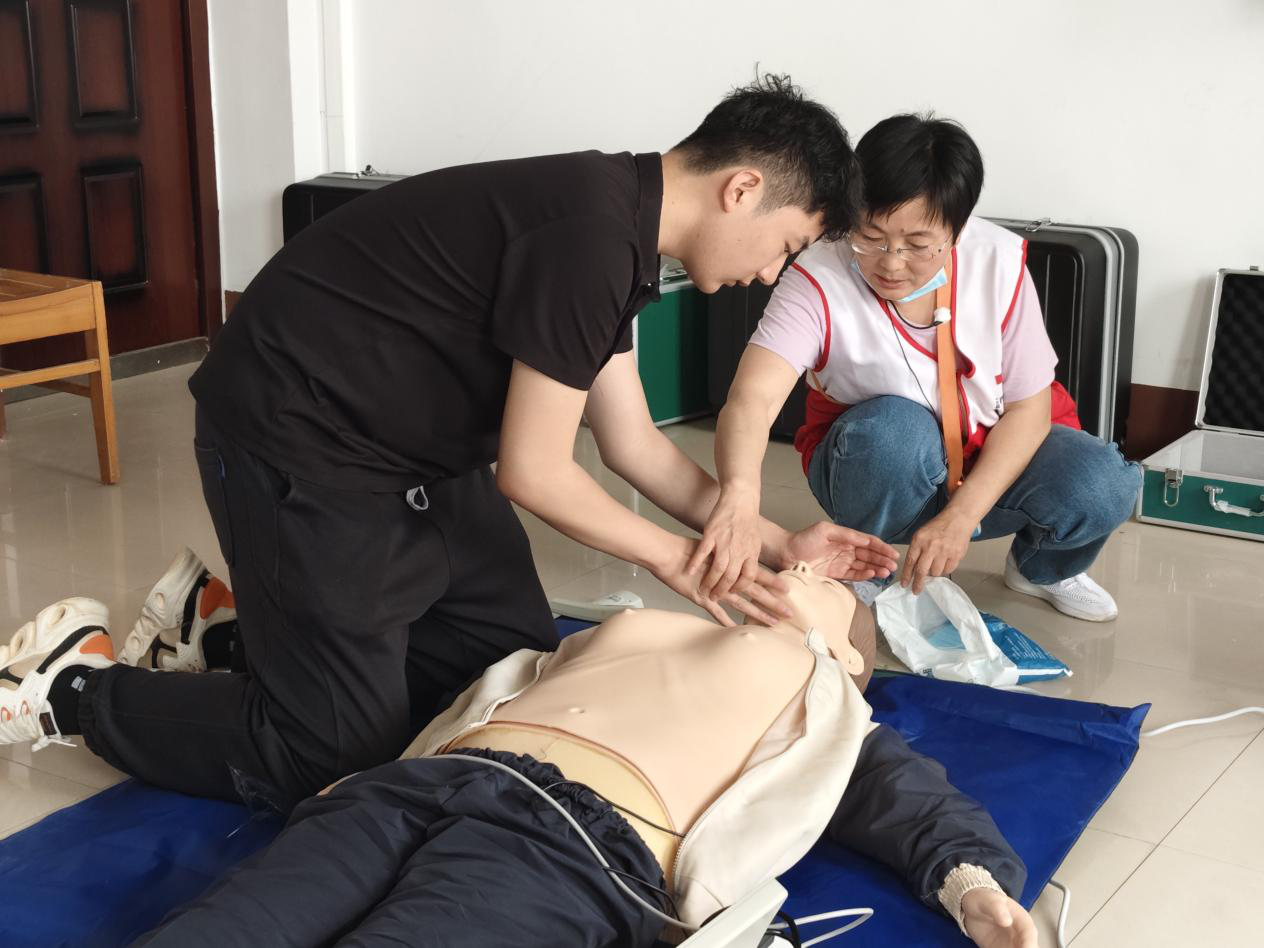 彭照云采取"理论+实操"教学模式,系统讲解海姆立克急救法、心肺复苏术(CPR)和创伤应急救护三大核心技能。通过人体模型演示气道异物梗阻解救手法,分步解析胸外按压的频率深度、人工呼吸操作规范,现场示范止血包扎、骨折固定等创伤处理技术。