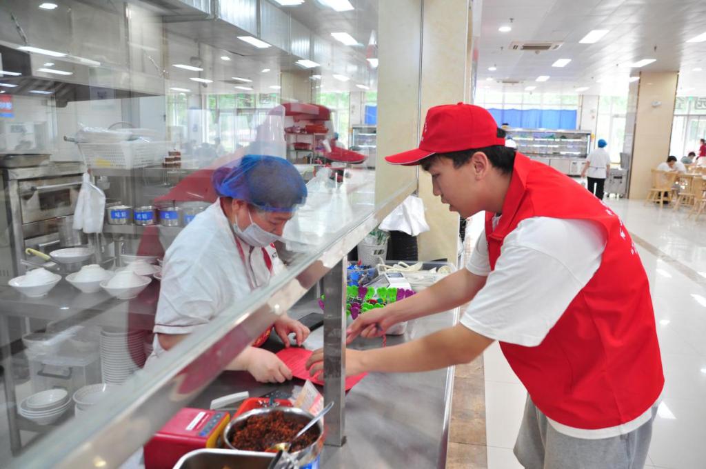 5月23日,学院将活动延伸至教职工餐厅。活动现场,关于食品安全的易拉宝依旧有序摆放,志愿者结合专业知识,对过往教职工及学生讲解食品安全知识,尤其针对夏季食品存放问题做出细致解答。随后,志愿者走进餐厅,为工作人员派发食品安全传单,并送上寓意吉祥的五彩绳,让大家在学习知识的同时,感受到浓浓的端午节日关怀。宣讲临近尾声,志愿者与在场教职工、学生共同喊出“外卖图快捷,健康需警惕”的口号,呼吁大家重视食品安全问题。