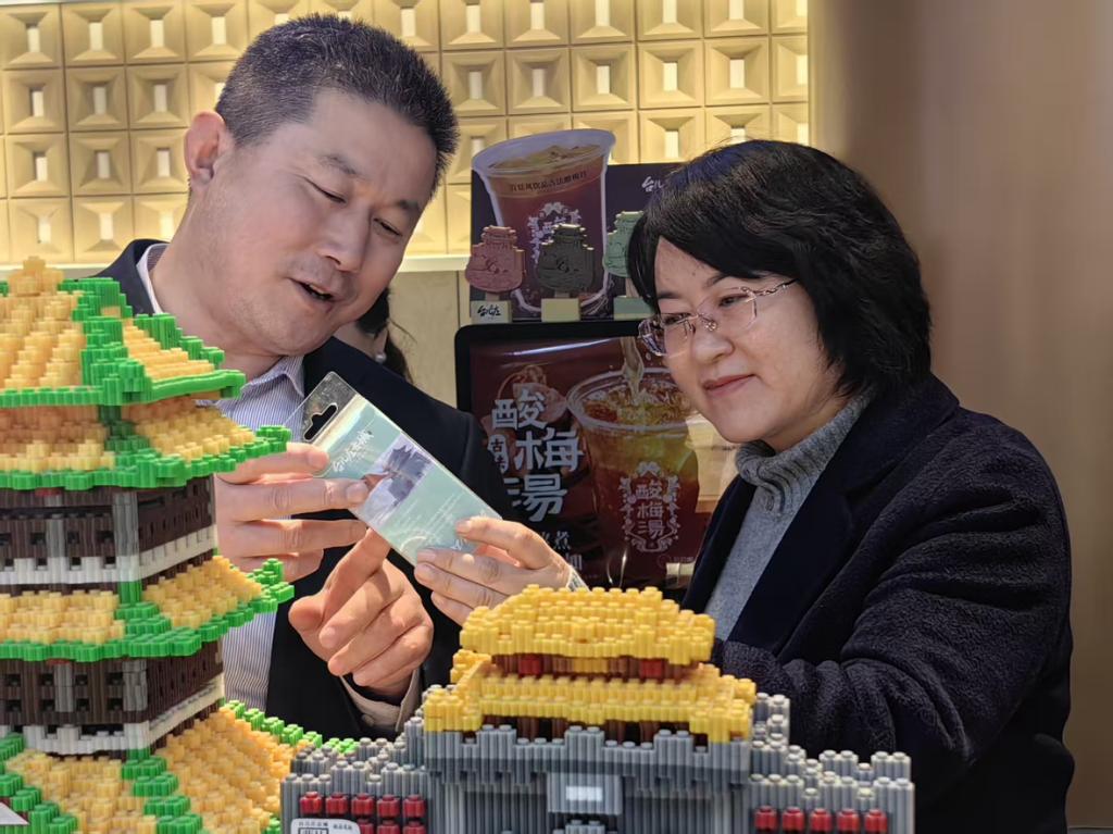 在文创店内,学院师生依次观摩了冰箱贴、明信片、钥匙扣、文创笔记本、铜盘等经典文创产品,并重点了解了温变马克杯、八音盒、文创雪糕等创新产品的设计思路与制作流程。工作人员系统介绍了文创产品从创意萌发到成品落地的全过程,分享了如何依托地域文化打造具有市场价值的文创产品的实践经验。参观过程中,师生认真观看、积极思考,学院领导、辅导员与文创店工作人员就创意融合、工艺技术、市场对接等问题进行了深入交流。华莹书记认为,台儿庄古城文创产品实现传统文化与现代创意有机结合的模式,为学院食品、制药类文创产品的研发提供了有益参考。学院后续将积极转化本次学习成果,结合专业特点,开发兼具科学内涵与创意特色的文创作品。