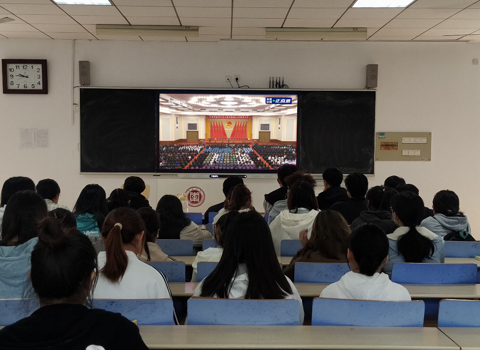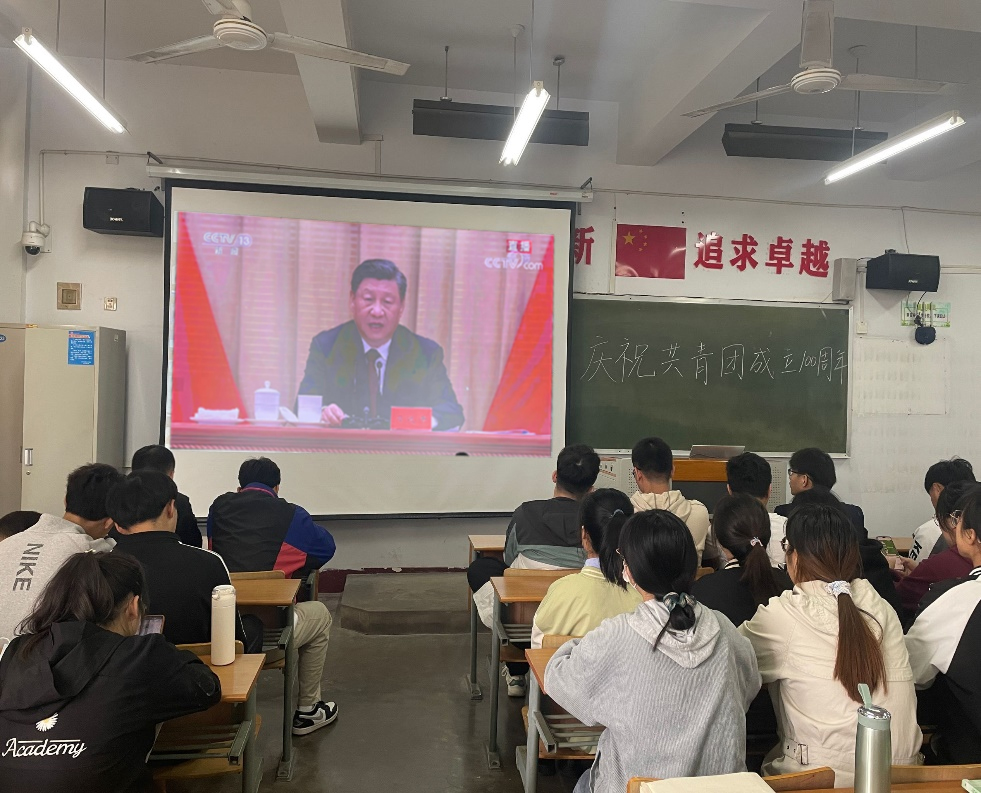 为学习贯彻习近平总书记重要讲话精神,深刻领悟共青团百年奋斗历程的宝贵经验,激发青年学生奋进力量,5月10日,beat365平台唯一官网在文科楼教室组织2021级全体学生观看庆祝中国共产主义青年团成立100周年大会直播。