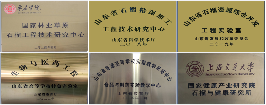 拥有国家林业草原石榴工程技术研究中心国家级平台1个,山东省石榴精深加工工程技术研究中心和石榴资源综合开发山东省工程研究中心等省级科研平台2个,山东省高校生物与医药工程特色实验室1个,山东省实验教学示范中心1个,新型产业研究院1个,省级青年创新团队2个,建有10余个市级科研平台。食品与制药省级实验教学示范中心拥有固定资产总值4000余万元,包括液质联用仪、气质联用仪、超高效液相色谱仪、激光共聚焦显微镜等精密分析仪器。承担国家自然科学基金等国家级、省部级课题20余项,承担企事业单位委托课题127项,到账经费1861万元。累计发表学术论文400余篇,获授权国际和国家发明专利20余项,获中国产学研合作创新成果奖、中国发明协会发明创新奖等科技成果奖10余项;近年来,在石榴等枣庄特色农产品精深加工、中草药栽培种植、质量控制及综合利用等领域,取得了有特色的研究成果。