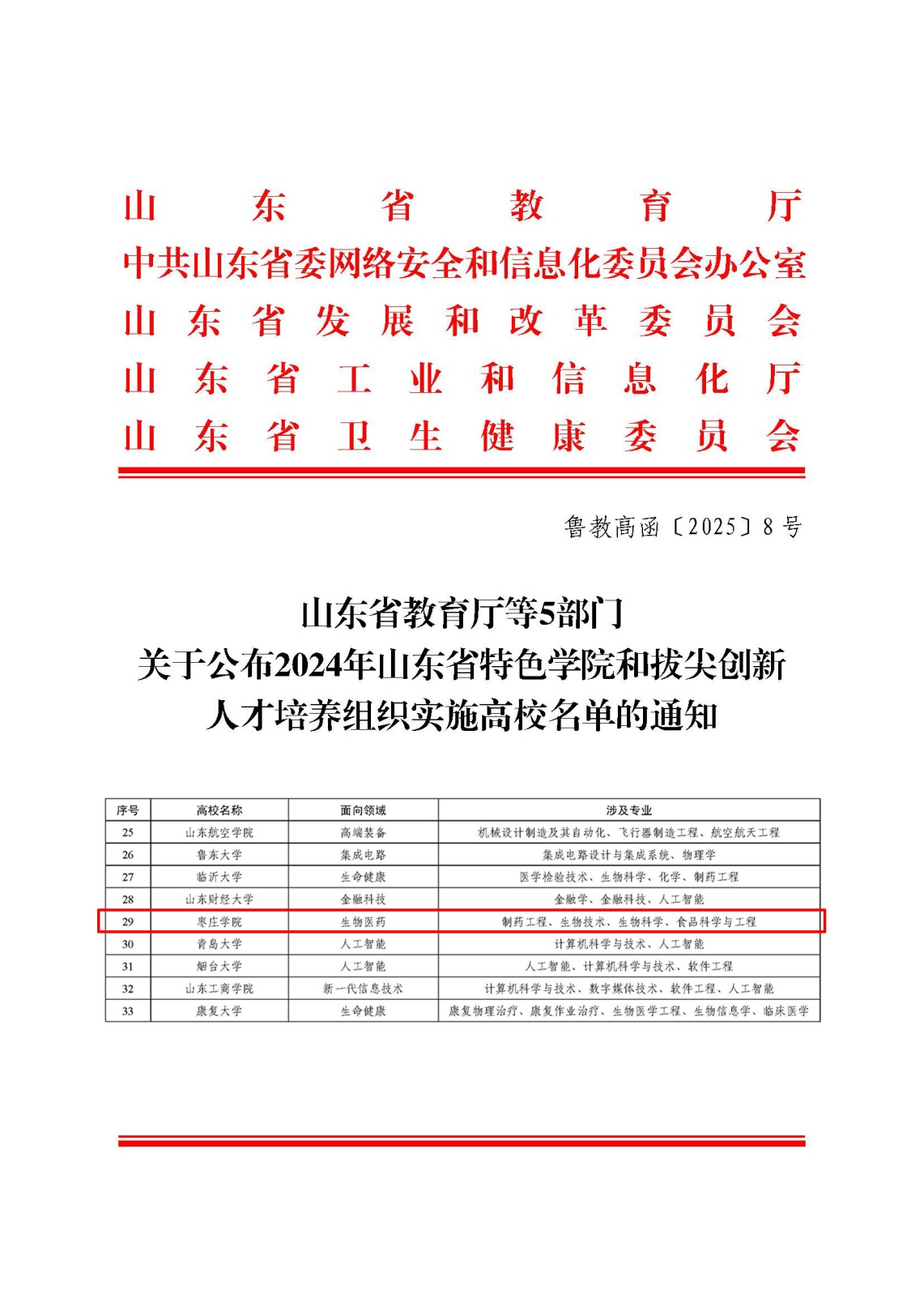 培养目标:聚焦国家健康中国战略和山东省“医养健康”等“十强”产业,培养一批具有卓越创新意识、突出实践能力和综合素质优秀的生物医药领域拔尖创新人才。