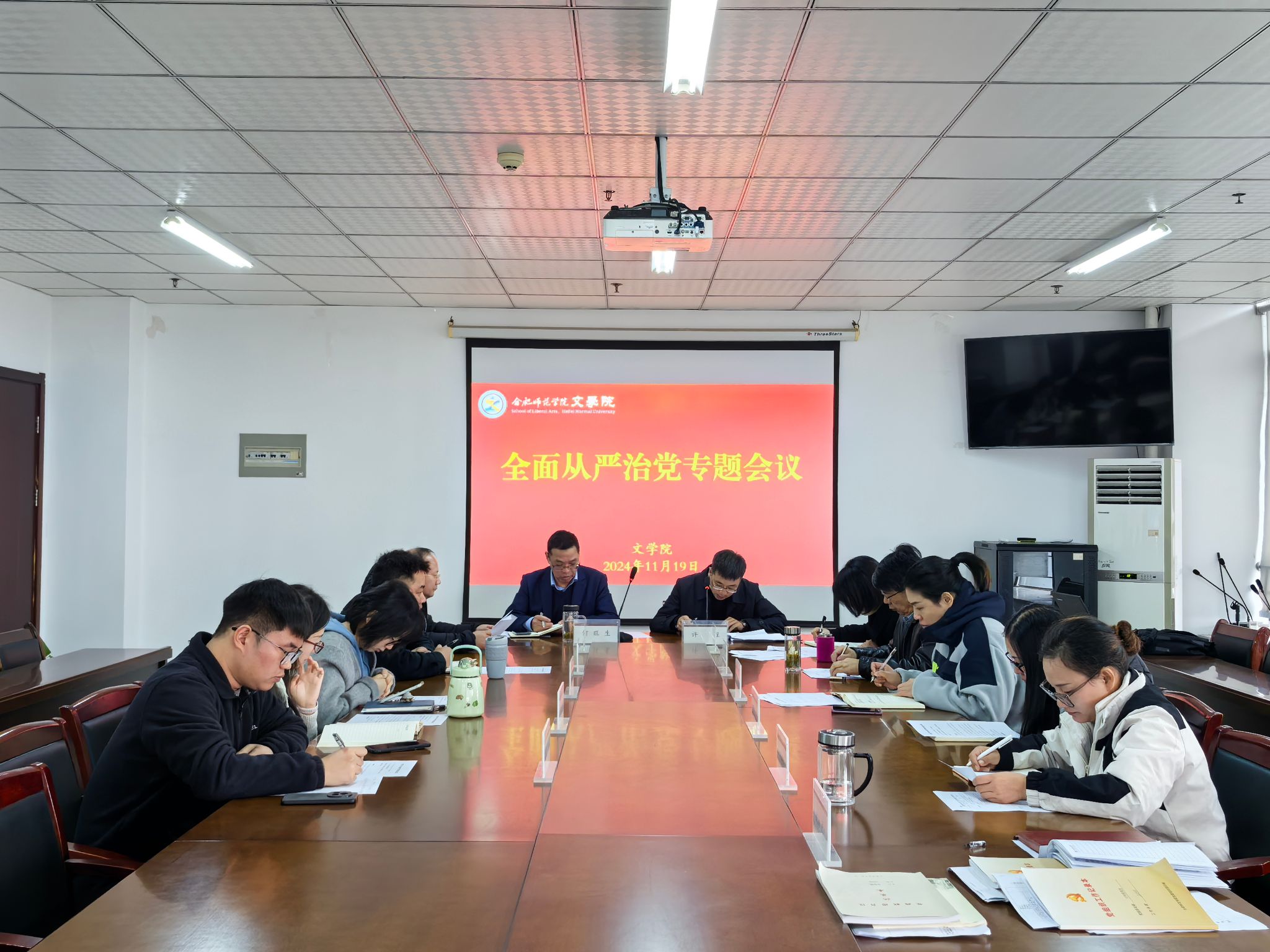 会议强调,全面从严治党是一项长期性、经常性、基础性工作,召开专题会议研究全面从严治党工作很及时也很必要,对于完善工作机制,打造过硬队伍,切实履行责任,将各项工作落到实处,为高质量发展提供有力政治和纪律保障有着积极的作用。会议要求,要坚持把政治建设摆在首位,落实好2024年全面从严治党和党风廉政建设各项任务,牢固树立“四个意识”,坚定“四个自信”,始终做到“两个维护”;要坚持打牢基础,不断提升党组织政治功能,充分发挥党支部政治把关作用,坚决守好意识形态阵地,提升组织生活质量,推进党建事业深度融合;要坚持压紧压实落实,切实履行“一岗双责”,增强纪律意识,锻造优良的工作作风、师德师风和优良学风,努力营造学院风清气正的良好生态。
