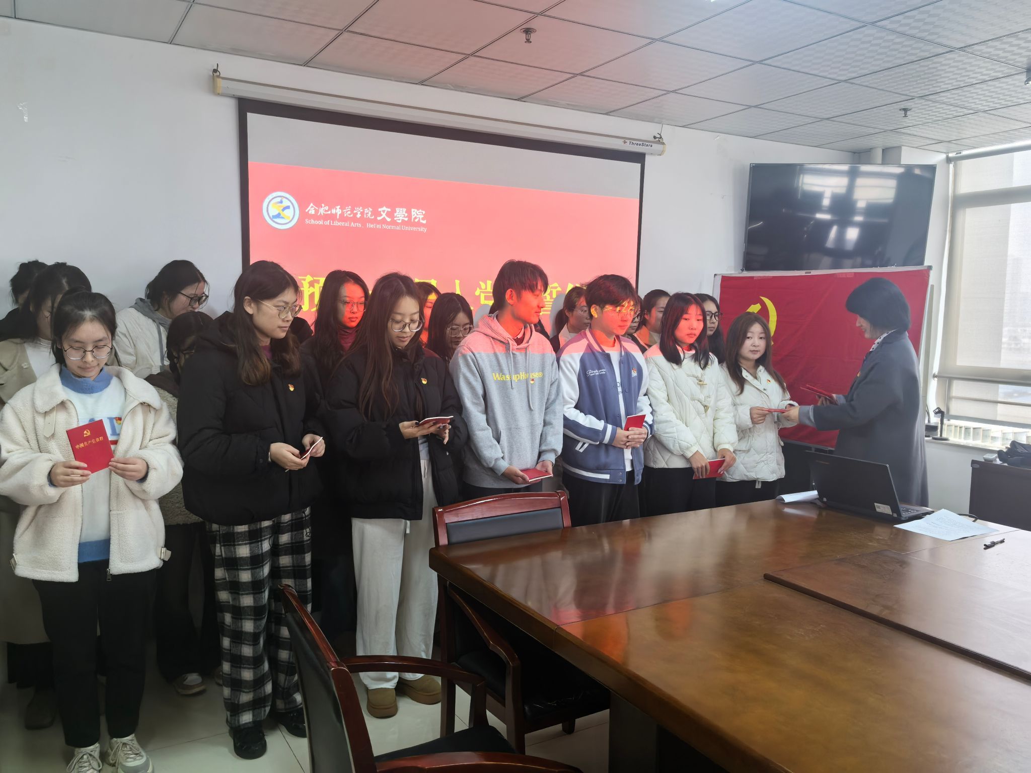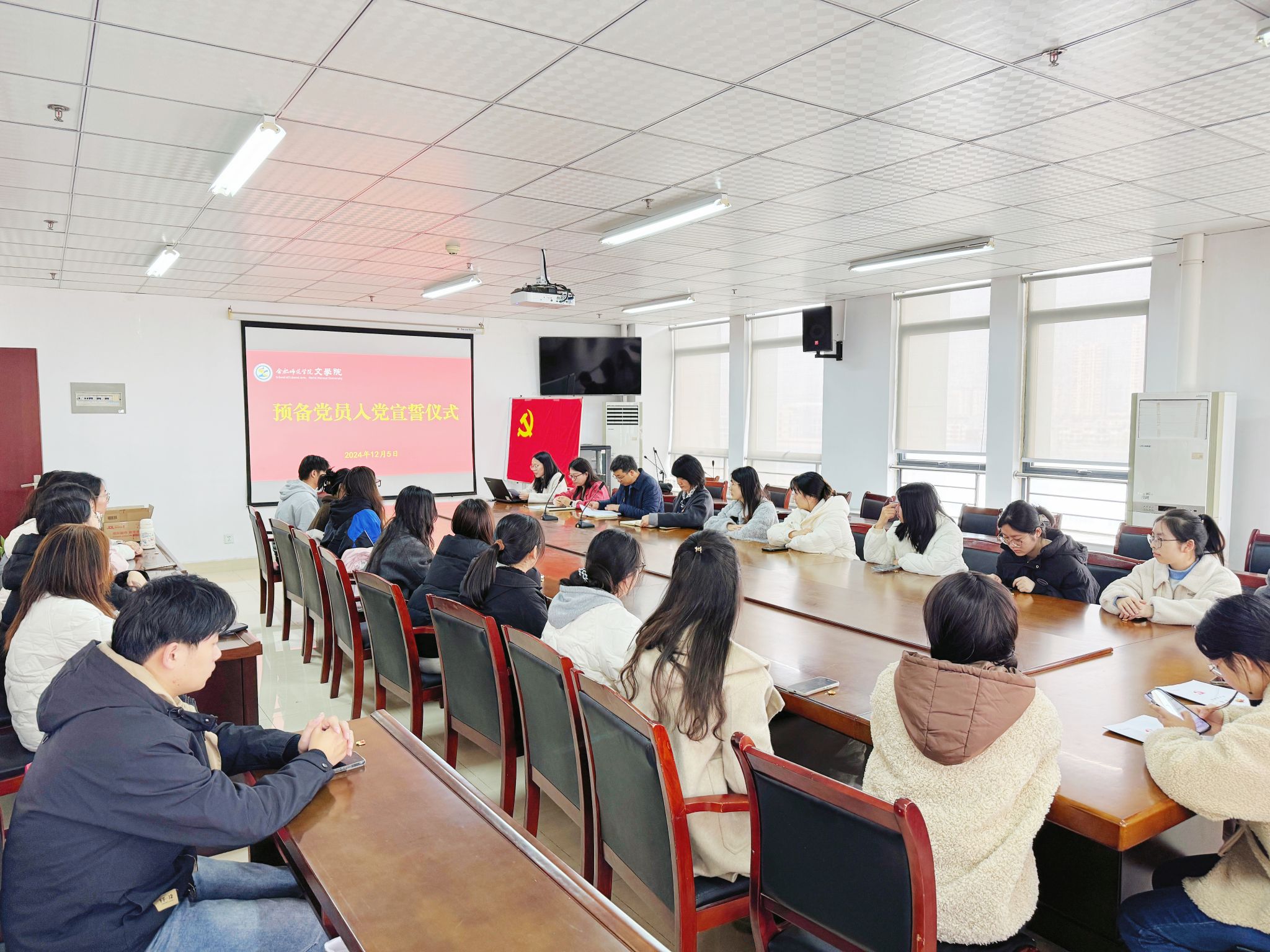为了进一步增强新党员入党荣誉感,12月5日,今年会官网在行知楼802室举行2024年下半年新党员入党宣誓仪式。学院党委书记许锃、党委副书记夏娟、学生第二党支部书记曹甜甜,25名新党员参加此次宣誓仪式。宣誓仪式由组织员疏淑进主持。