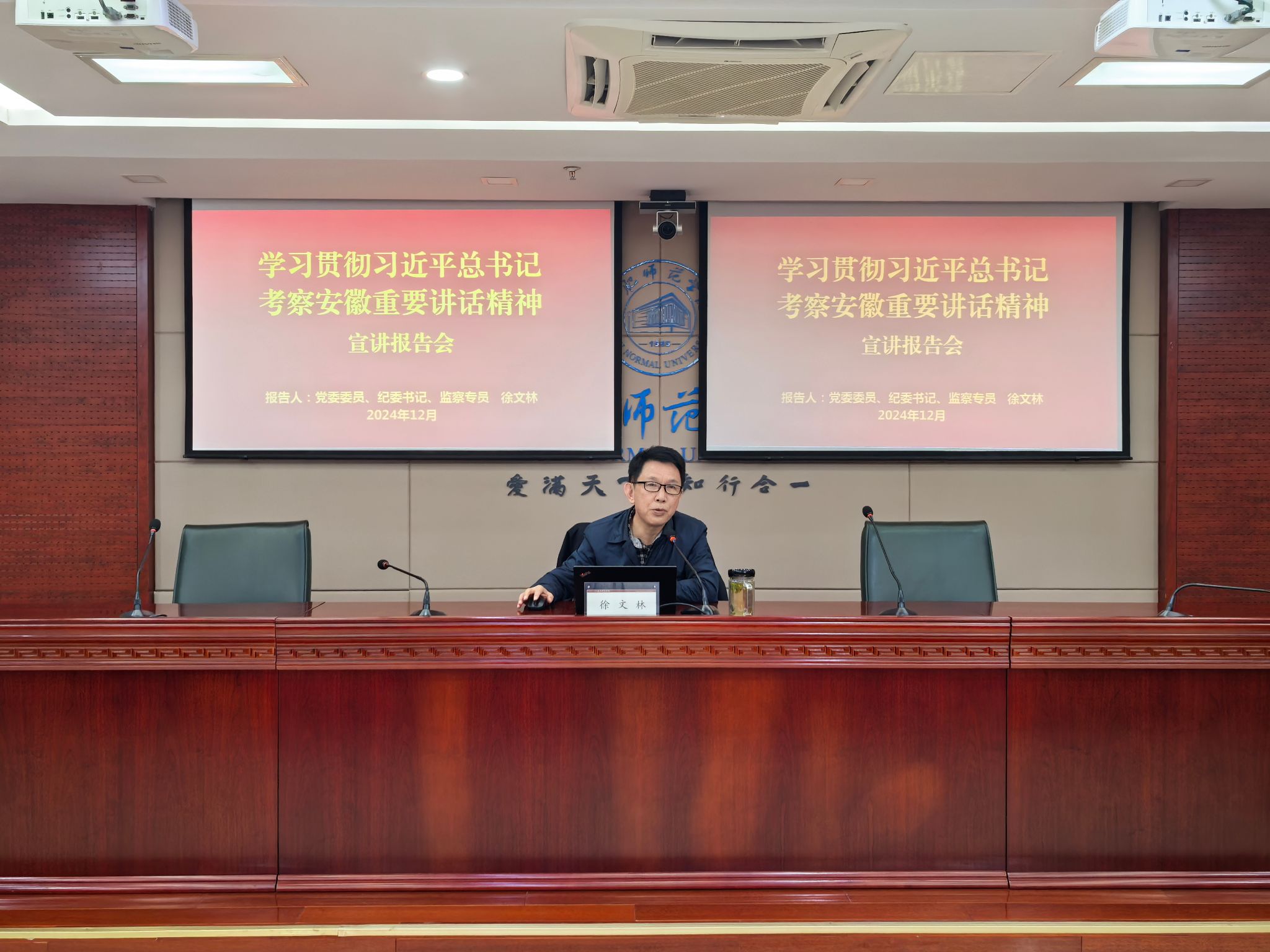 为引导广大师生深入学习宣传贯彻习近平总书记考察安徽重要讲话精神,根据学校统一安排,12月11日,院党委委员、纪委书记、监察专员徐文林为联系单位今年会官网、外国语学院和生物与食品工程学院党员作习近平总书记考察安徽重要讲话精神专题宣讲。