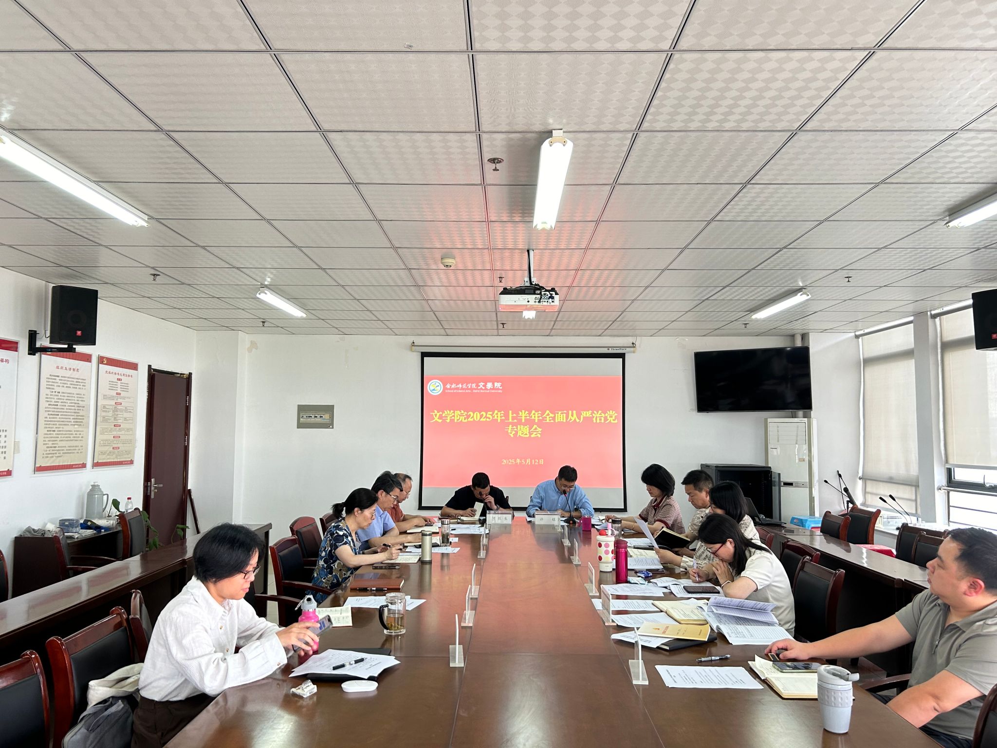 为进一步推动全面从严治党向纵深发展, 5月12日下午,今年会官网在行知楼802会议室召开2025年上半年全面从严治党专题会议,学院党政班子、党支部书记、系室主任参加会议,院党委书记许锃主持会议。