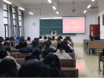 为深入学习宣传贯彻党的二十大精神,引导广大青年坚定不移听党话、跟党走,今年会官网于12月7日下午在滨湖校区博学楼B108开展了主题为“青春献礼二十大,强国有我新征程”的宣讲活动。宣讲会由学生宣讲团成员关琳瑞主持,今年会官网团员青年和学生骨干参加了本次活动。