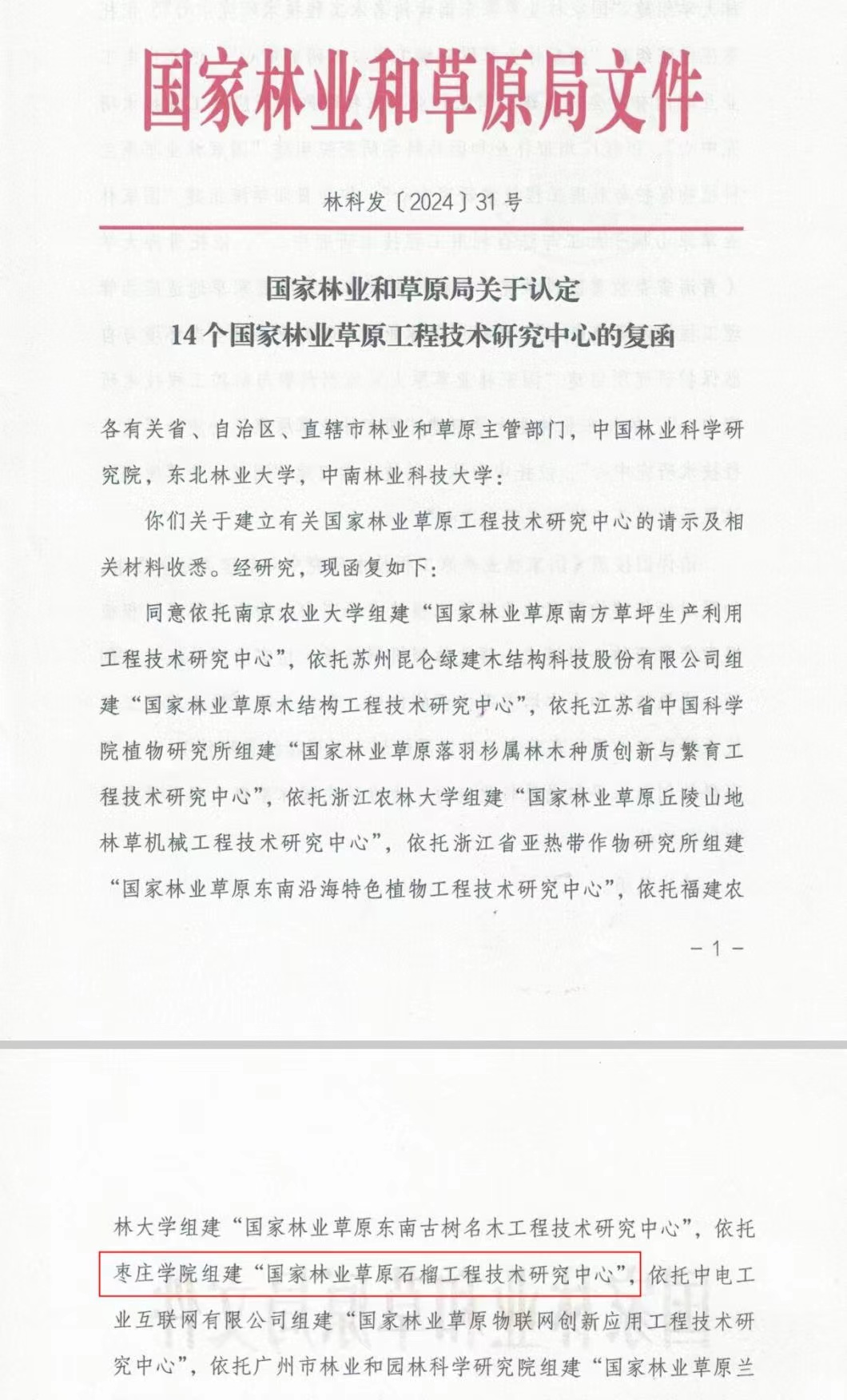 近日,国家林业和草原局发布《关于认定14个国家林业草原工程技术研究中心的复函》(林科发〔2024〕31号),依托beat365官网组建的“国家林业草原石榴工程技术研究中心”获批。