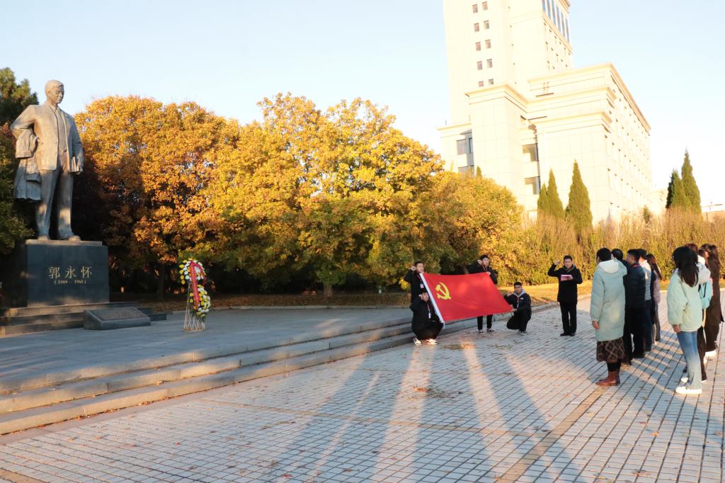 在郭永怀事迹陈列馆,党员们在讲解员的带领下,通过展厅中八个单元陈列的500多张照片、200多件珍贵文物资料、4段视频记录,沉浸式了解了“两弹一星”功勋科学家郭永怀求学为国、学成报国、以身殉国的人生历程和光辉事迹,事迹令大家人心生敬仰,潸然泪下,内心久久激荡。大家表示,作为高校师生党员,要努力践行科学家精神,坚定理想信念,勇攀科技高峰,立足岗位实践,为伟大的新时代做出自己应有的贡献。随后,在郭永怀同志雕像前,怀着崇敬之心进行了缅怀仪式、敬献花篮、重温入党誓词。