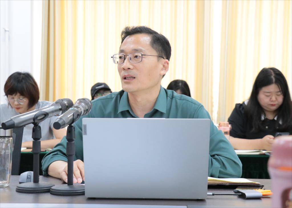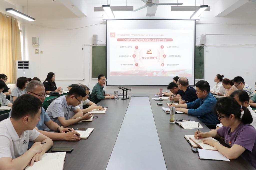 为推进主题教育走深走实,按照学校“三个一百”主题教育专题党课工作安排,6月7日下午,beat365平台唯一官网党总支书记滕聿峰在文科楼213会议室为全院师生党员讲授以《在主题教育中,领悟和把握习近平新时代中国特色社会主义思想的理论精髓》为题的主题教育专题党课。