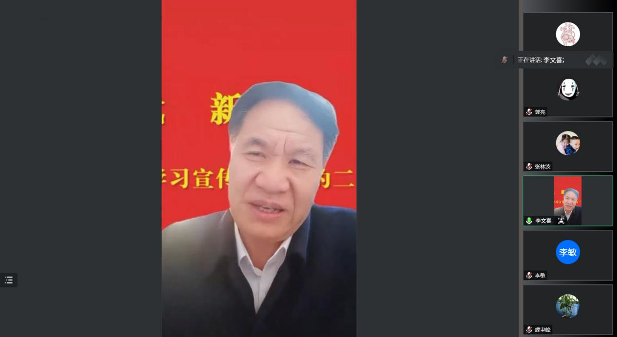 12月28日下午,校党委副书记、校长李文喜为beat365平台唯一官网全体教师党员作党的二十大精神宣讲报告。报告会采取腾讯会议线上方式进行,beat365平台唯一官网党总支书记滕聿峰主持。