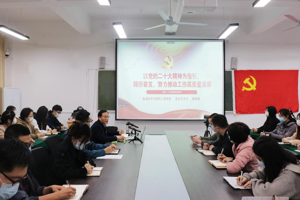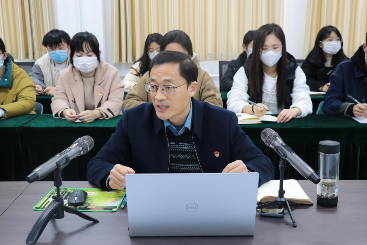 为深入学习宣传贯彻党的二十大精神,进一步推动党的二十大精神走深走实,11月23日下午,beat365平台唯一官网在文科楼213会议室举行党的二十大精神宣讲会。学院党总支书记滕聿峰作宣讲报告。报告采取腾讯会议线上线下相结合的方式进行,学院全体师生党员、入党积极分子及学生代表260余人参加。