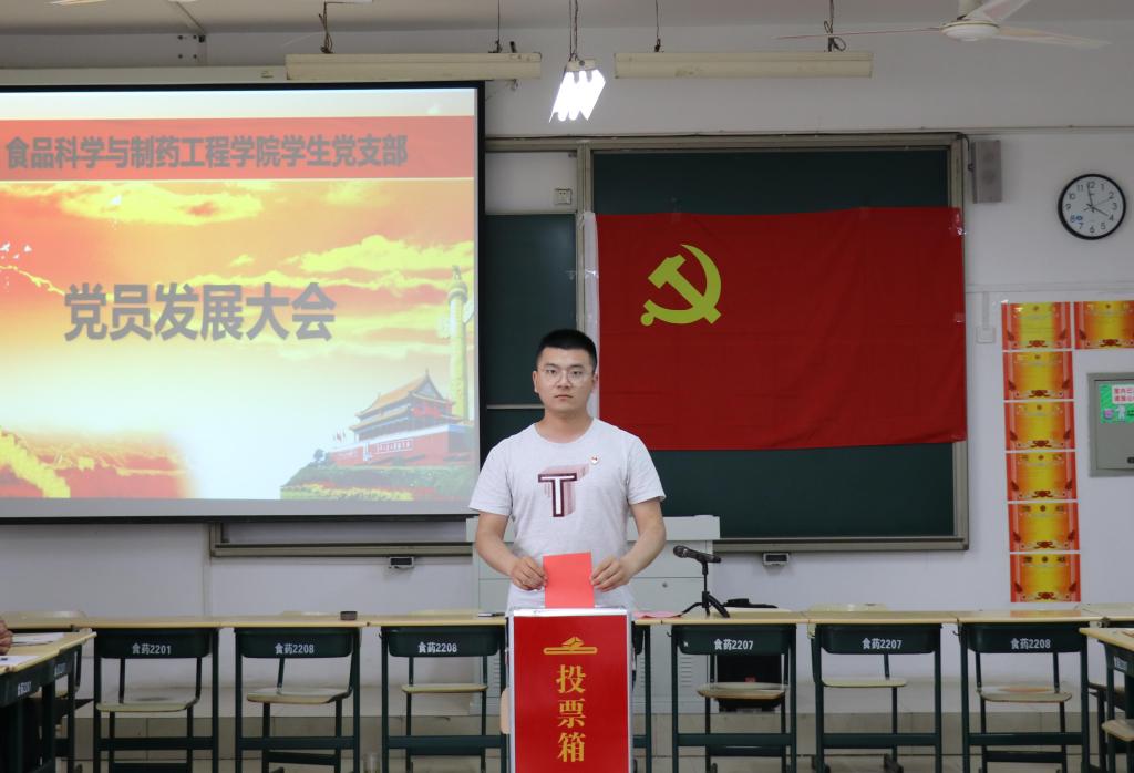 孙星代表学生党支部介绍26位同志的培养、政审、公示等情况,支部大会进行讨论,与会同志充分发表意见,最后针对这些发展对象是否符合入党的要求与标准,与会正式党员进行无记名投票表决。票决后,孙星宣读表决结果和支部大会讨论情况,大会决定彭慧等26名同志顺利通过培养期考察,正式被党组织吸收为中共预备党员。