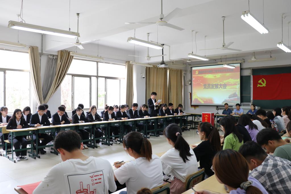 大会开始,学生党支部书记孙星清点到会人数。会上,彭慧等26名发展对象分别宣读了本人的入党志愿书,汇报了自己对党的认识以及学习、生活情况。接着,发展对象的入党介绍人说明其在考察期、预备期的思想、学习、工作和生活上的优缺点,以及今后需要改善和提高的地方,并对是否介绍其成为预备党员发表意见。