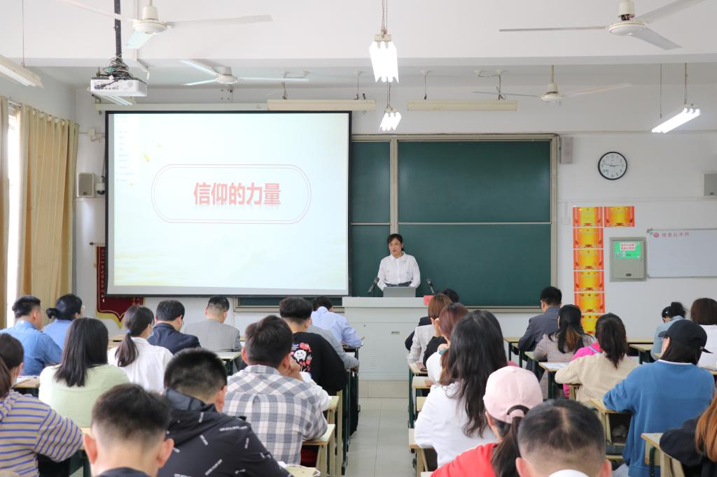 5月8日下午,beat365平台唯一官网邀请马克思主义学院张玲玲老师到学院开展“信仰的力量”党史教育专题党课。党课在理工楼2207教室举行,学院党政领导、全体教职工和学生党员参加党课学习。