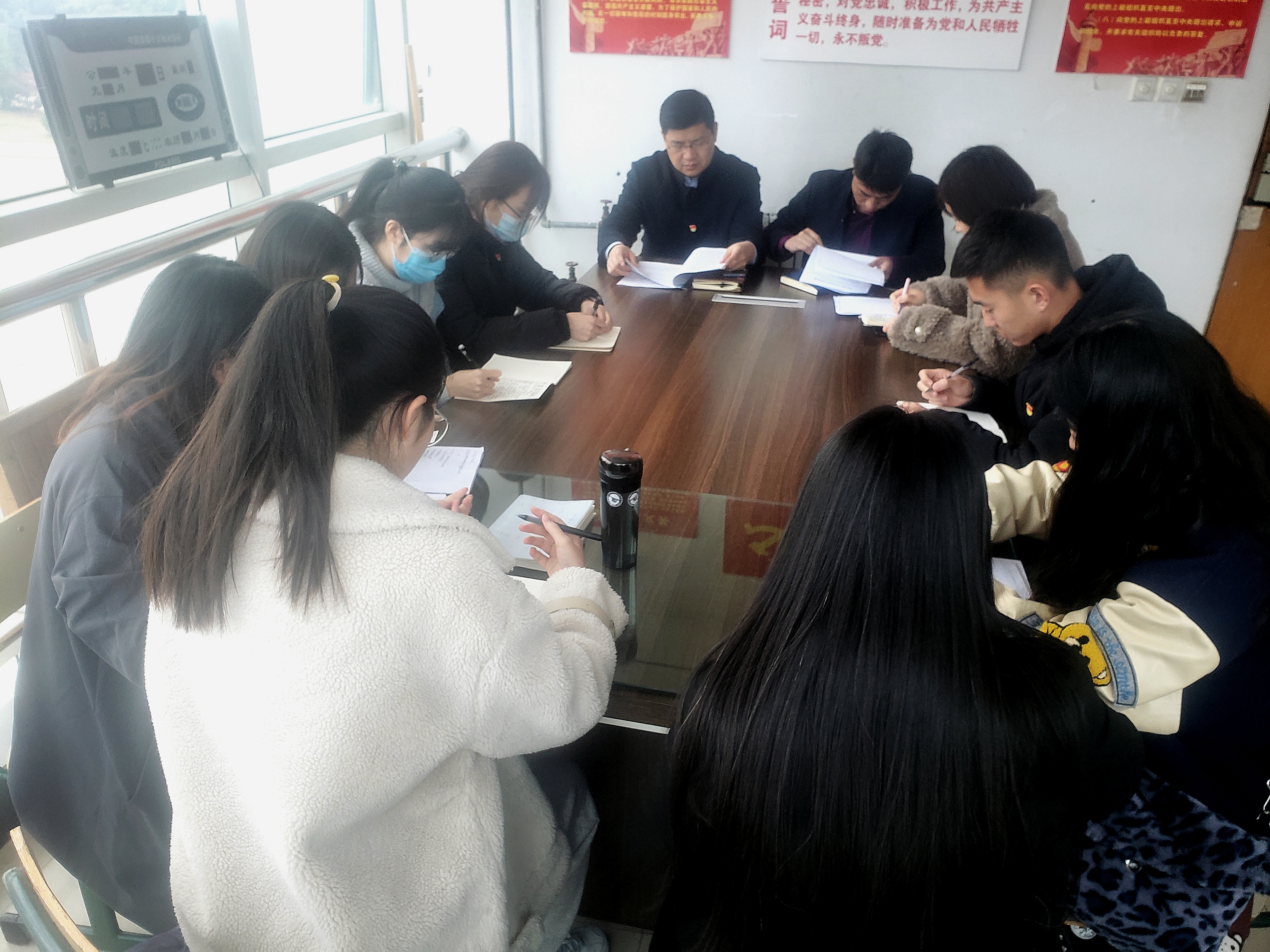学习活动中,支部书记讲到,党的十九届五中全会是在我国即将全面建成小康社会,实现第一个百年奋斗目标,乘势而上开启全面建设社会主义现代化国家新征程、向第二个百年奋斗目标进军的历史交汇之际,召开的一次具有时代性、全局性、前瞻性、开创性的重要会议。全会审议通过“十四五”规划和2035年远景目标建议,对“十四五”时期我国经济社会发展各项工作作出了全面部署,为全面建设社会主义现代化国家提供了行动指南。全体党员同志要认真研读全会公报、《建议》、《建议》说明和习近平总书记在全会上的重要讲话精神,深刻领会其思想要义、精神实质和科学内涵。