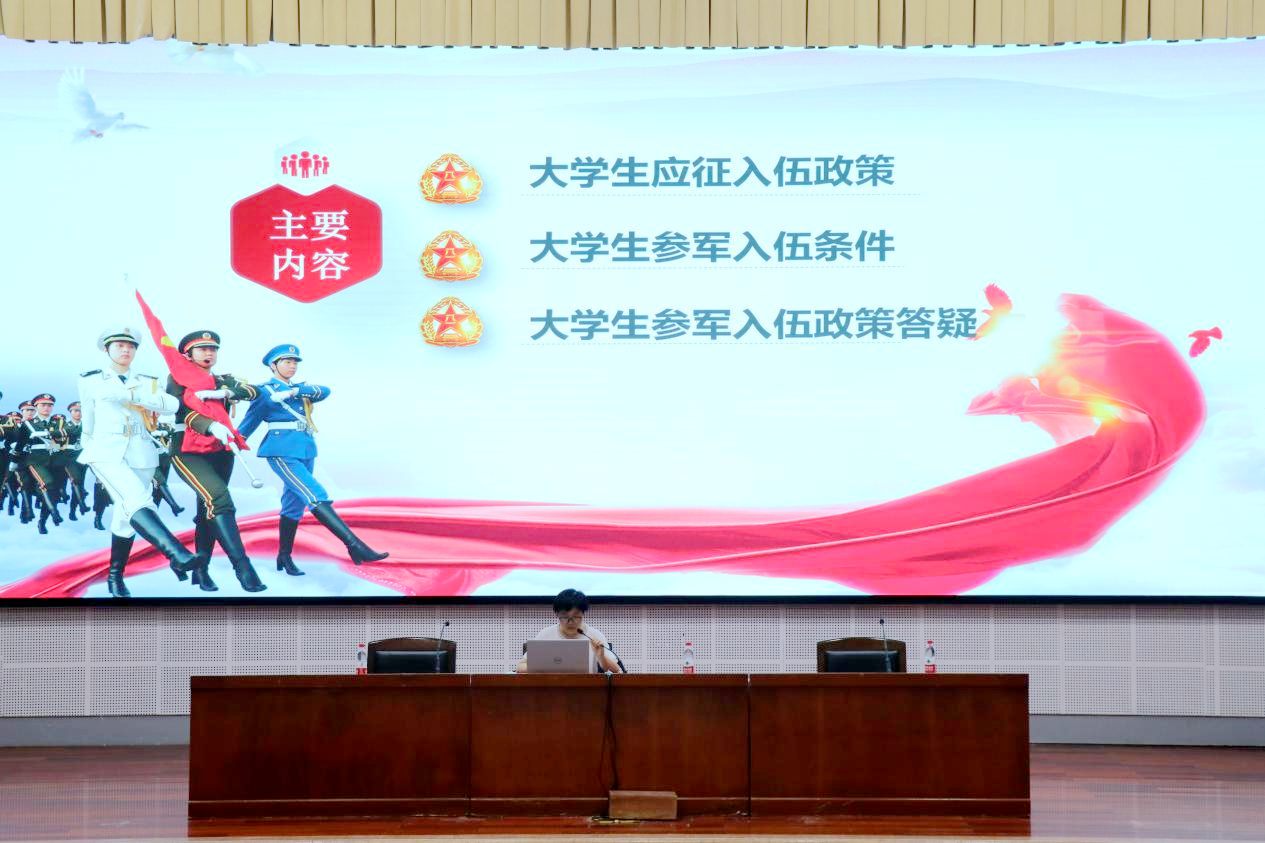 6月4日晚,beat365平台唯一官网在综合楼报告厅举办了2021年大学生秋季征兵政策宣讲会,20级全体男同学和部分19级同学参加了宣讲会。此次宣讲会邀请光电工程学院王艳丽老师担任主讲。
