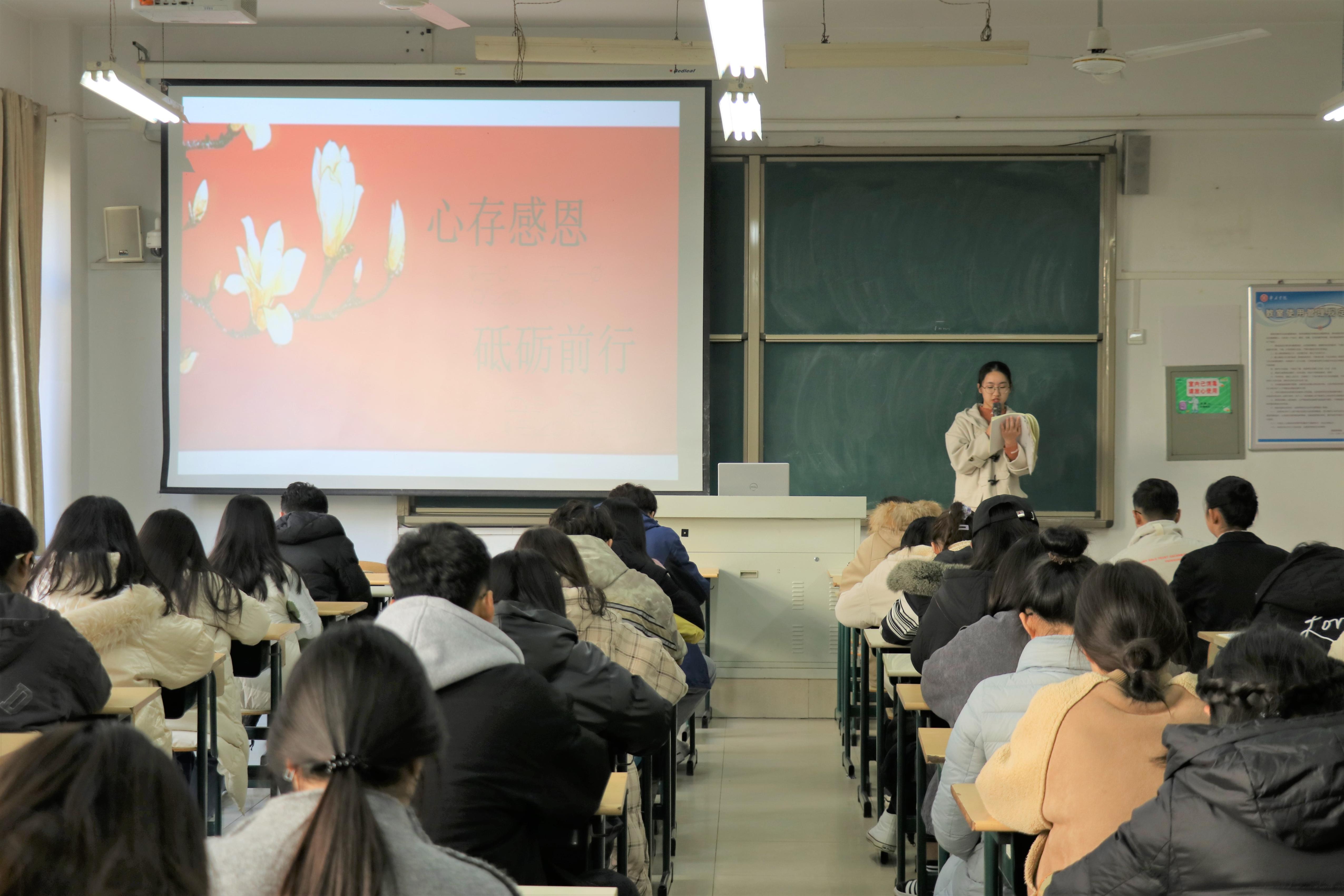 为发挥资助育人功能,帮助同学们牢固树立感恩意识,鼓励家庭经济困难同学直面困难、不懈奋斗,走好学业路、人生路,beat365平台唯一官网于12月6日在理工楼2208教室举办了以“心存感恩,励志前行”为主题的演讲比赛,学院家庭经济困难学生观摩了比赛。