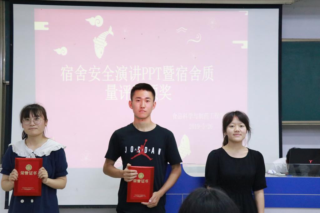 本次活动主要包括两环节,首先是宿舍安全演讲PPT展示,选手们通过应用PPT和激情的演讲,联系宿舍安全实际,解说了宿舍存在的安全隐患以及防护措施,目的在于提高了同学们的安全意识。第二个环节是对宿舍质量评比活动中获奖宿舍进行颁奖,经综合评比有B617宿舍获得一等奖,C606、316、B622宿舍获得二等奖,415、C602、418、B614、314宿舍获得三等奖。