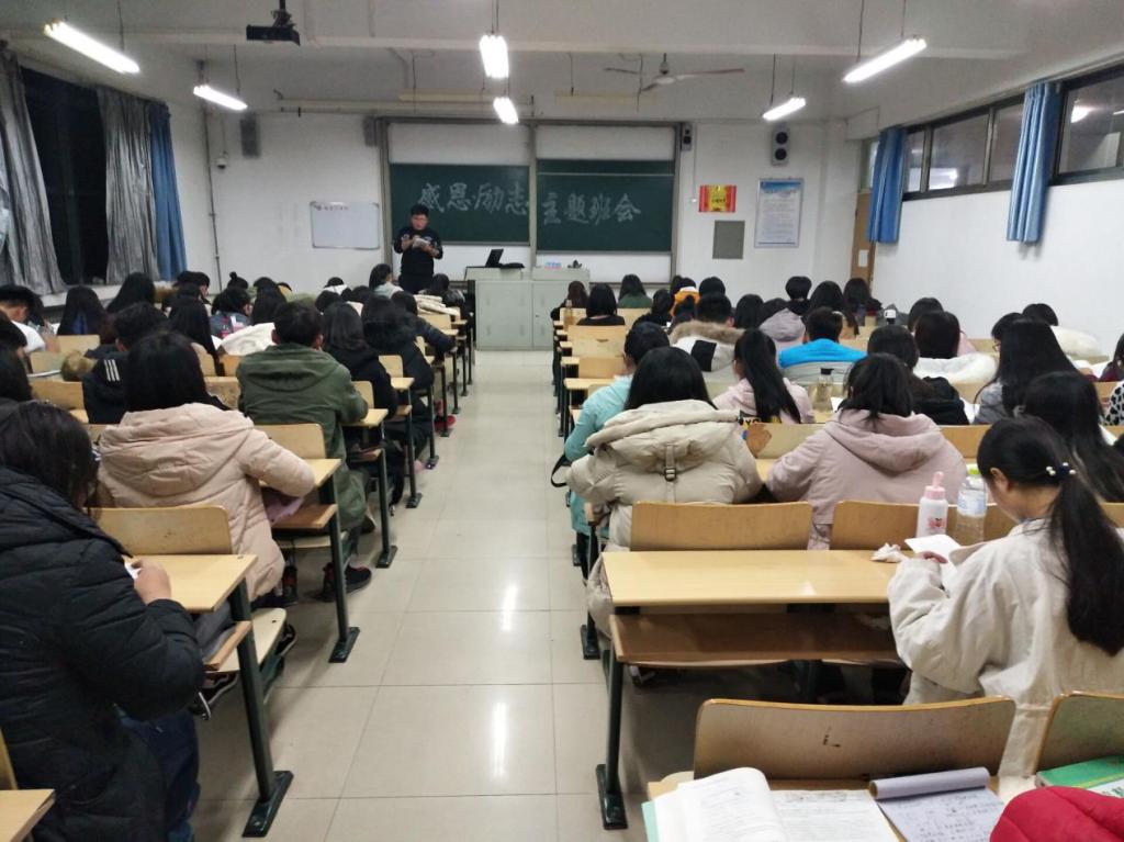 12月2日晚,beat365平台唯一官网组织2018级学生召开“感恩助学,励志成才”为主题的班会。
