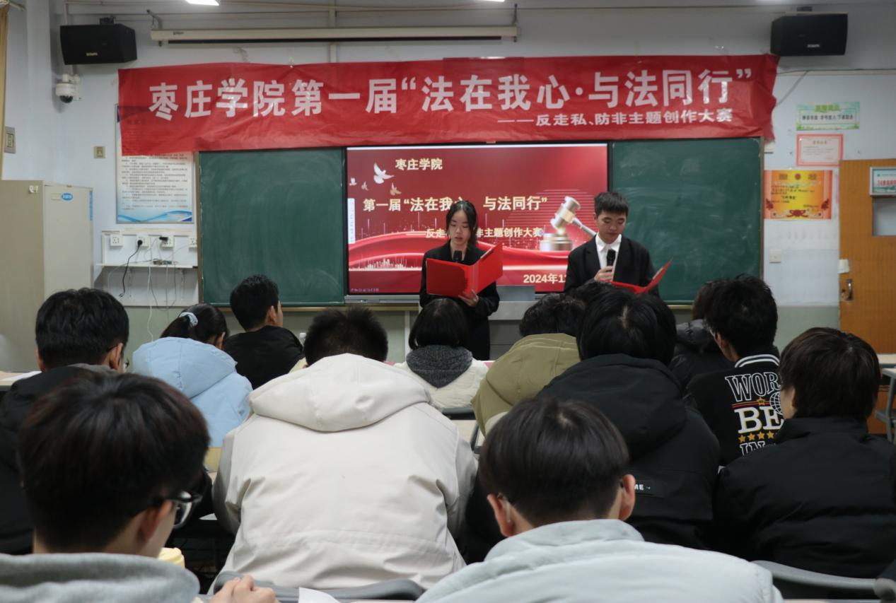 为贯彻落实党的二十届三中全会精神,深入学习习近平法治思想,做好普法宣传工作,12月9日下午,枣庄学院第一届“法在我心·与法同行”——反走私、防非主题创作大赛在文科楼成功举办。本次大赛由共青团枣庄学院委员会主办,beat365平台唯一官网团委承办。