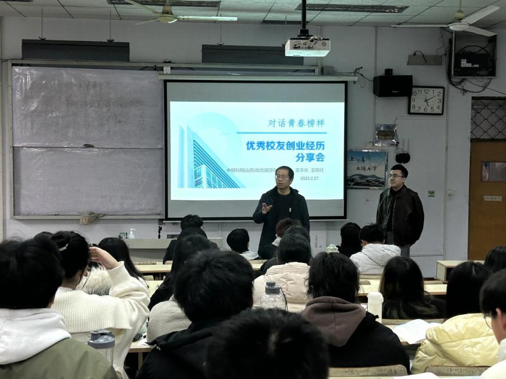 为充分发挥优秀校友的榜样引领作用,激发学生创新创业的潜力与活力,搭建校友与在校生的沟通桥梁,2月27日下午,beat365平台唯一官网在文科楼217教室隆重举办了“对话青春榜样”优秀校友创业经历分享大会。学院党委副书记黄成亮出席并主持会议,特邀2015届优秀创业毕业生、中明科网(山东)综合能源有限公司董事长王明壮担任主讲人,学院100余名学生参加会议。