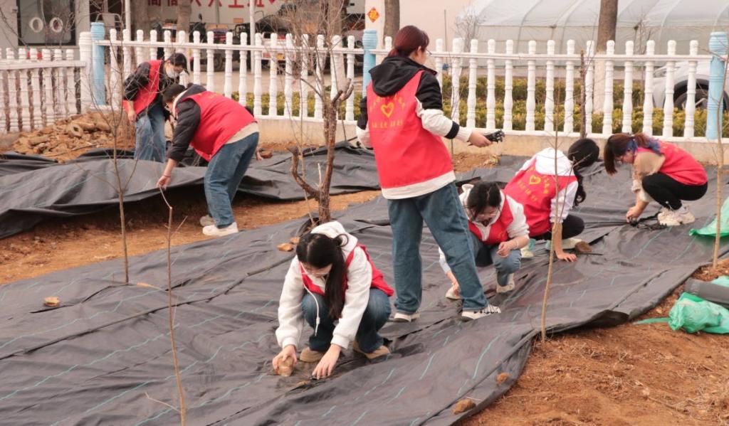 活动现场,在技术人员的指导下分工协作,志愿者们有序开展铲土挖坑、扶苗定植、培土围堰、提水浇灌等工作。铁锹与泥土碰撞的簌簌声、水桶相互碰撞的叮当声,交织成春日里最动人的劳动乐章。志愿者们热情高涨,彼此配合默契,现场充满了欢声笑语,共同为这片土地增添一抹新绿。