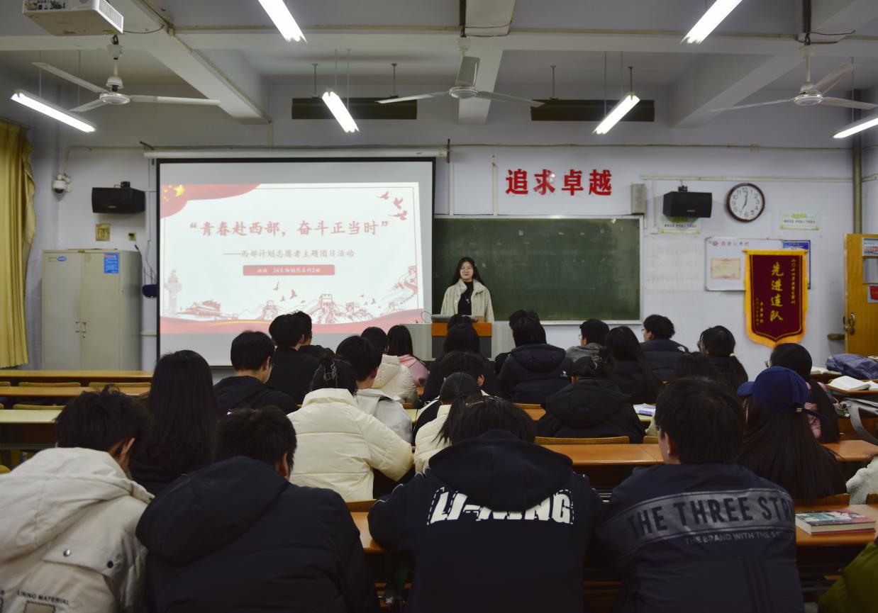 为推进大学生志愿服务西部计划的开展,鼓励毕业生投身西部基层干事创业,响应“到西部去,到基层去,到祖国和人民最需要的地方去”的号召,3月19日下午,beat365平台唯一官网在文科楼举办以“青春赴西部·奋斗正当时”为主题的西部计划志愿者团日活动,学院全体同学参加。