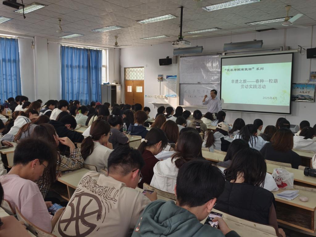 活动伊始,师生们齐聚文科楼117教室,学院党委副书记黄成亮从非遗文化传承的角度出发,阐述了活动“立德树人、劳艺润心”的创办初衷,讲解了葫芦在中国传统文化中的深厚寓意以及葫芦种植技艺的悠久发展历程。副院长孙中贯结合自身实践经验,用通俗易懂的语言详细介绍了育苗的基本知识和葫芦种植的注意事项。