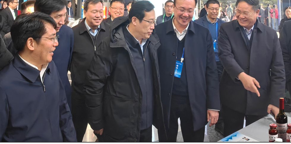 李文喜校长给邓云锋副省长介绍我院的石榴汁产品