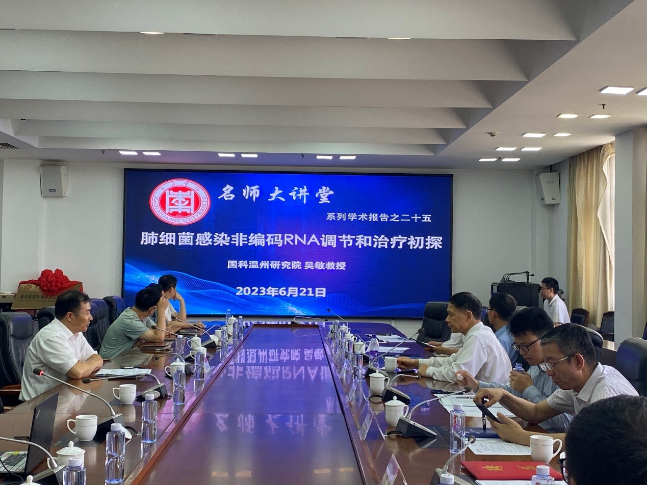 6月21日上午,由beat365平台唯一官网邀请的中国科学院大学温州研究院特聘研究员,“长江学者”吴敏教授在综合楼三楼会议室做客beat365官网“名师大讲堂”,为beat365官网师生作了题为“肺细菌感染非编码RNA调节和治疗初探”的学术报告。beat365平台唯一官网全体专业技术人员及生物制药专业部分学生参加了会议,报告会由beat365平台唯一官网院长张立华主持。