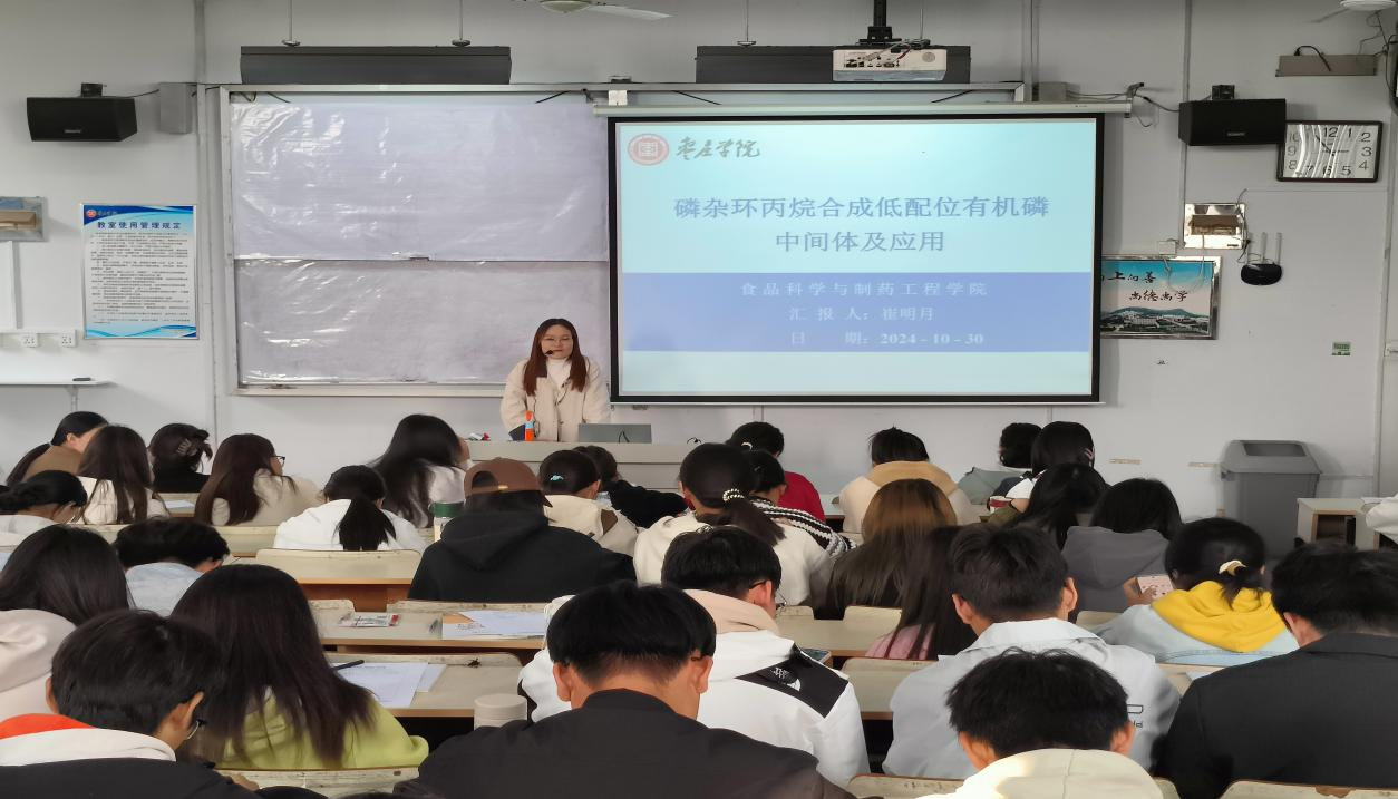 为进一步增进学术交流,拓展学院师生的学术视野。10月30日下午,beat365平台唯一官网在文科楼117教室举办2024年第十期青年学者学术论坛。本次论坛由崔明月博士主讲,“药物绿色合成”科研团队及2022级、2023级食品科学与工程专业全体学生参加。
