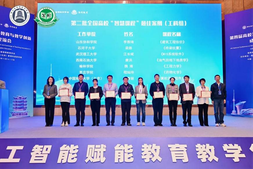 11月15日至16日,由湖北省高等教育学会指导、笃行新起点(北京)教育科技研究院主办的“第四届智慧教育与教学创新成果交流会”在湖北省武汉市举行。近400名来自清华大学、北京大学、新加坡南洋理工大学等海内外高校的教育工作者现场参会,线上直播观看人数逾万。大会面向全国征集“智慧课程”案例167份,经网络评审和专家组综合评议,最终认定31个教师(团队)获评最佳案例。我院老师程灿玲申报的《药物化学》智慧教学典型课程案例,凭借鲜明的工科特色、创新的教学设计与显著的实践成效,成功入选第二批全国高校“智慧课程”最佳案例(工科组),充分展现了我院在智慧教学改革领域的扎实成果与育人实力。