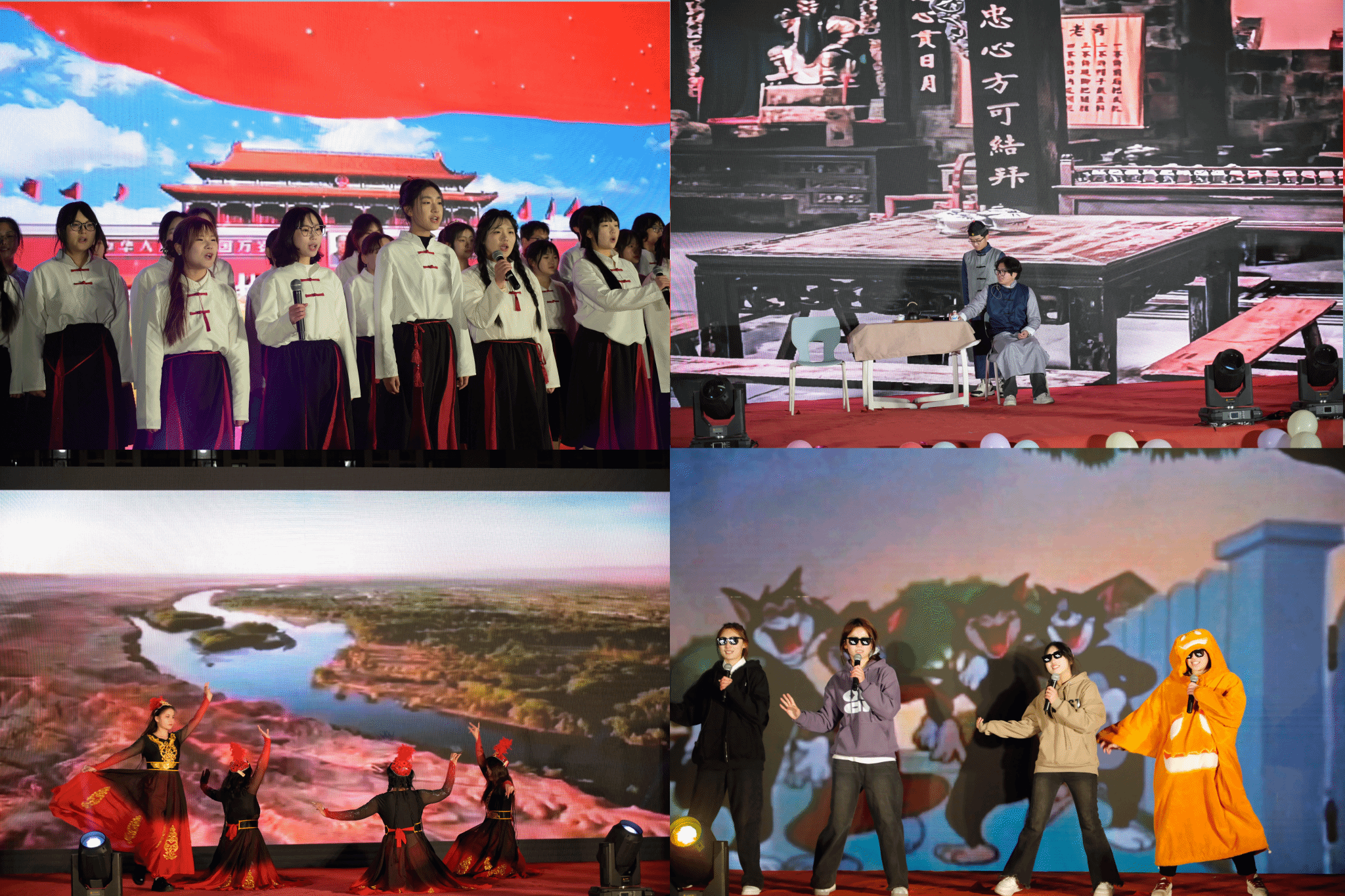 跨越新元,奔赴新愿,灯火辉煌的晚会舞台,诉说着文院学子回望过去的担当与实干,回响着展望2025年的祈愿与憧憬。乙巳新启、文院新韵、展耀新程,3个篇章拉开今年会官网元旦迎新晚会的精彩大幕。话剧、朗诵、舞台剧、器乐演奏、舞蹈、歌曲串烧等节目轮番上演,异彩纷呈的视听盛宴掀起现场阵阵热潮。话剧《字正腔圆》铿锵有力,古典舞《红马》意蕴悠长,大合唱《万疆》更是余音绕梁、气势磅礴。一幕幕生动的表演,一幅幅火红的画卷,文院学子用心、用情、用力传递着对祖国的无限热爱、对生活的无限热忱和对时代追梦的无限憧憬。