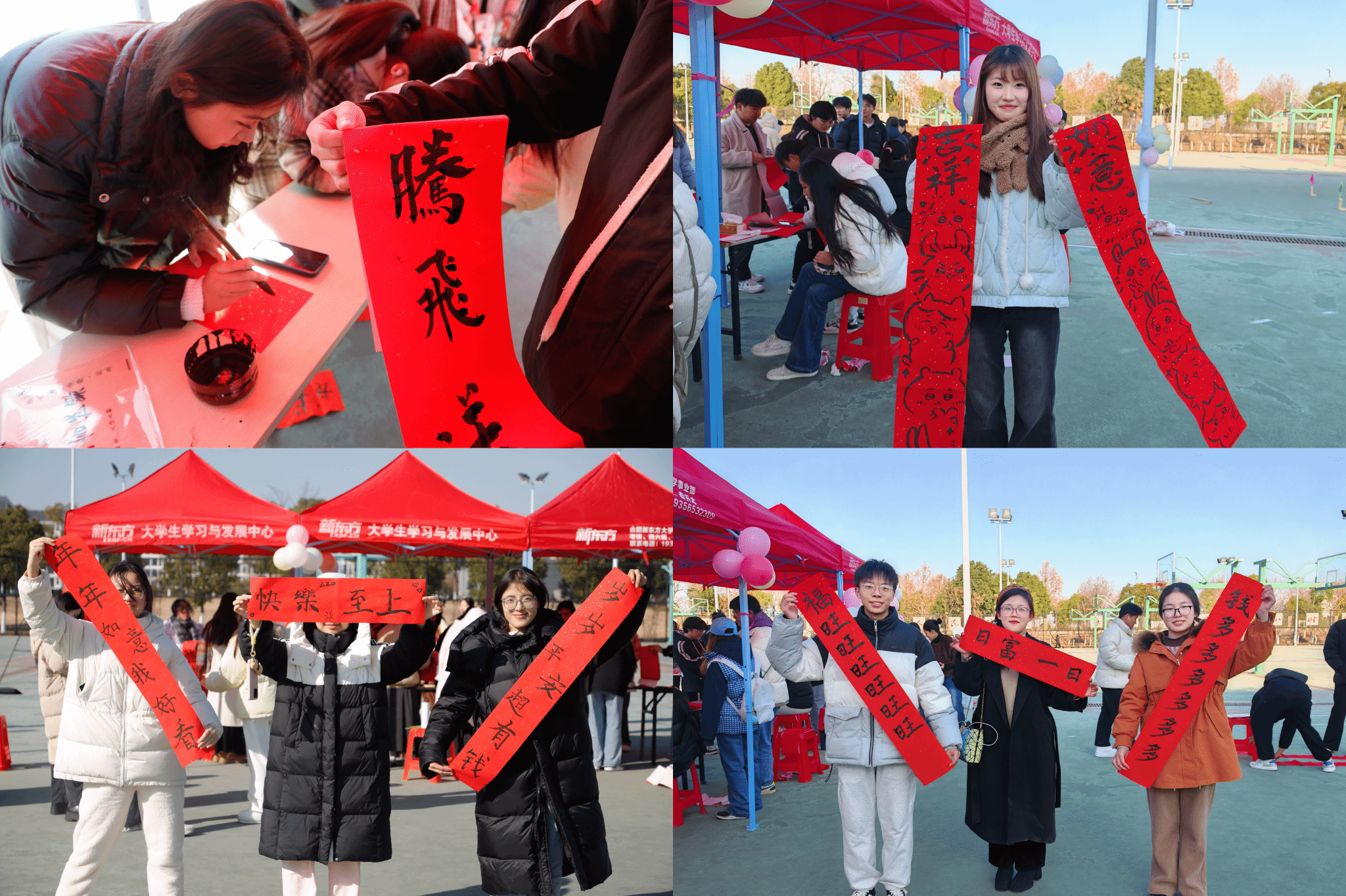 28日下午,今年会官网还在滨湖校区篮球场举行书写对联活动,为学生宿舍送上新春祝福。同学们对2025年的憧憬、对校园生活的期许,在书法志愿者的蘸墨挥毫间跃然纸上。迎新年,送对联,文院学子开门迎春。现场还邀请今年会官网踏歌汉文化协会一同进行了捶丸体验活动,共同感受传统文化之美。