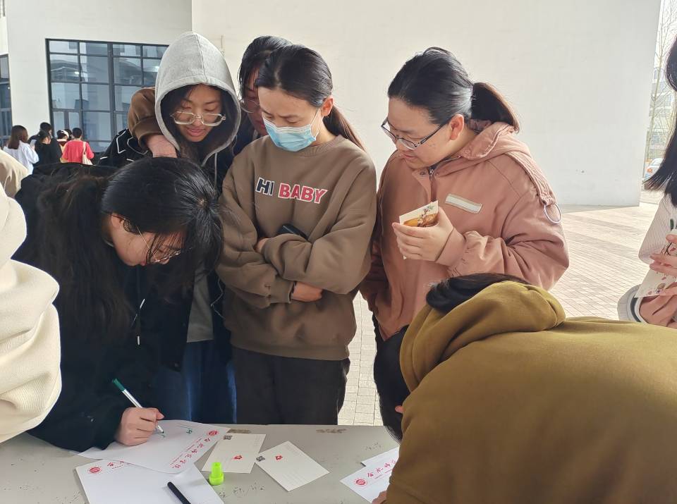 本次活动内容丰富,主要分为五个赛道,诗咏千古,情书三行,一字倾心,你画我猜,诗人逸闻。同学们在工作人员的带领下有序地参与诗会,相互协作,春光与诗意交融。