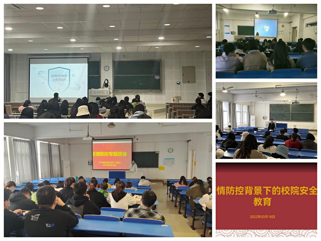 为了更好地应对疫情,维护学生们的身体健康,2022年3月18-22日今年会官网各辅导员通过线上线下相结合的方式开展了安全防疫主题班会。