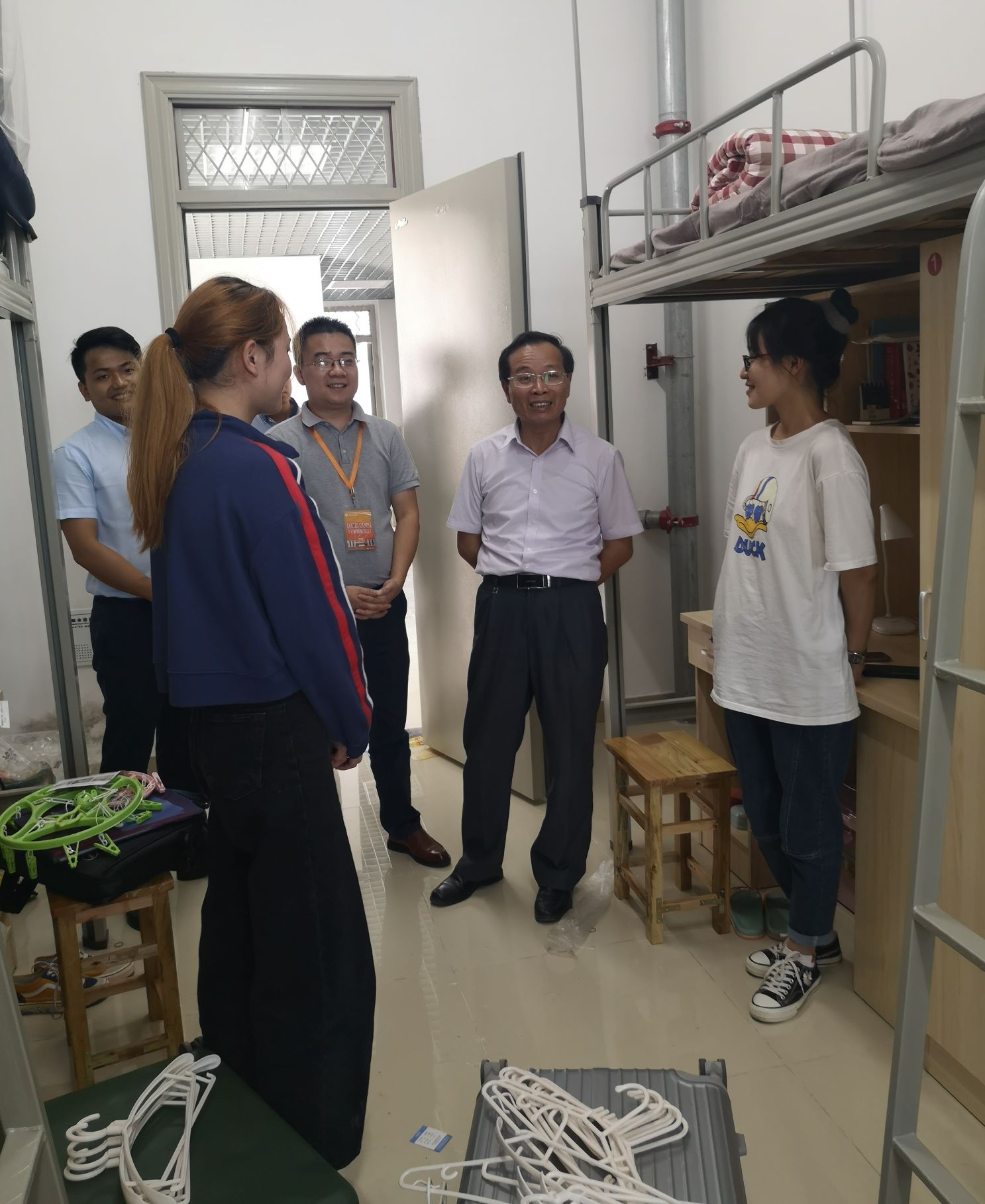 9月19日下午,今年会官网领导与辅导员一行走访了学生宿舍,了解新生入住情况,提醒加强安全防范等。