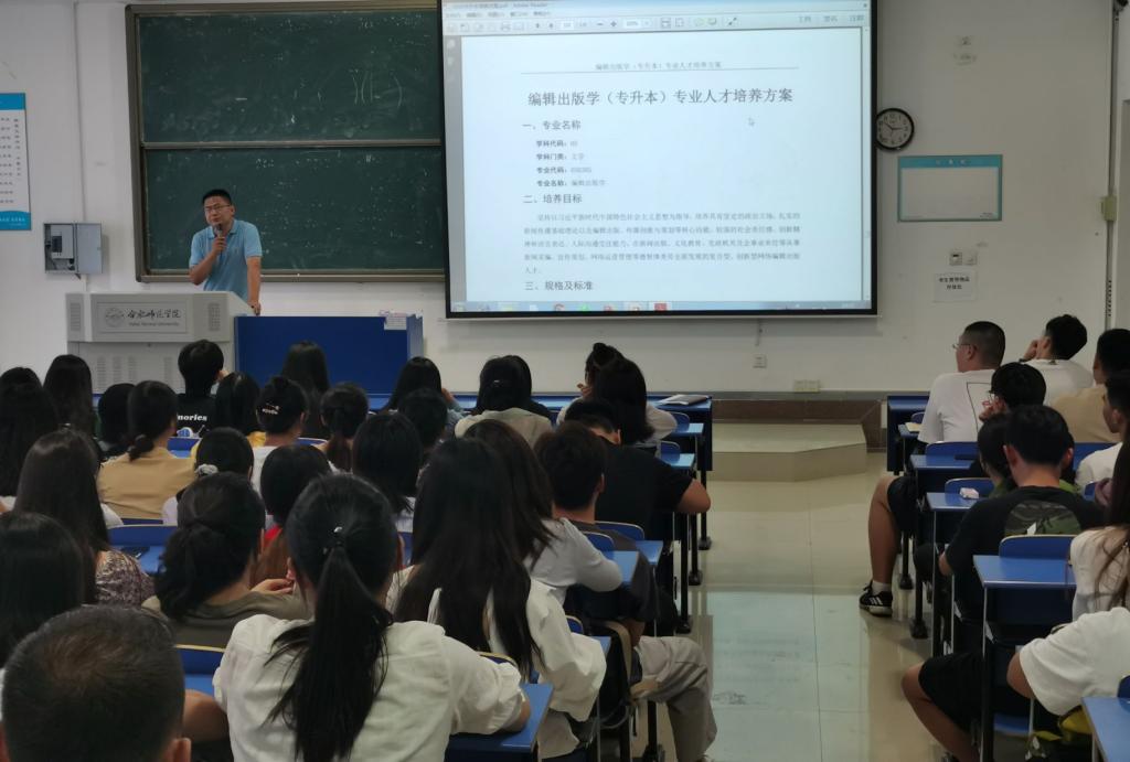 为了让2020级编辑出版学专升本的同学们加深对于专业人才培养方案的了解,9月15日下午,今年会官网在锦绣校区逸夫楼A204教室召开了2020级编辑出版学专业学生专业思想教育主题班会。今年会官网领导和编辑学系负责人参加了此次会议。会议由副院长何旺生主持。