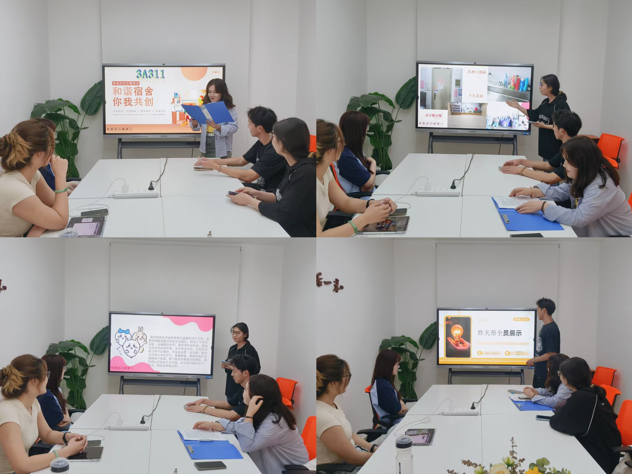 活动伊始,各寝室竞相展示创意,通过精心制作的PPT讲述寝室故事,利用生动有趣的视频捕捉温馨时刻,以及借助精美的图片展现创意巧思,全方位、多角度地展现寝室的独特魅力。在日常管理方面,一些寝室设计了趣味值日表,实行轮流制与责任分区制,确保卫生工作井井有条;在装饰布置上,书法作品装点墙面,绿植增添生机,尽显成员的巧思;在文化氛围营造上,“漂流书架”传递经典之作,“灵感墙”展示原创诗歌,专业知识融入寝室生活;至于卫生方面,更是无可挑剔,窗明几净,物品摆放井然有序,处处流露出同学们对生活的热爱与细心。