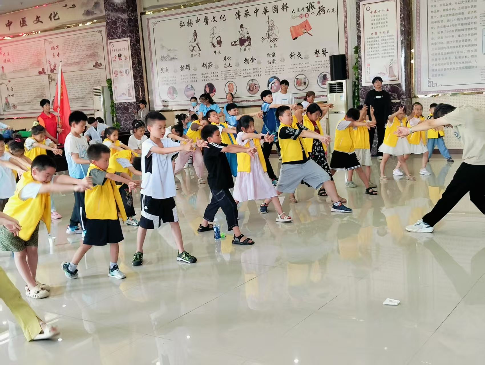最后的“五禽戏”动作学习将气氛推向高潮。小学员们在专业人员带领下整齐排列,依次模仿了虎、鹿、熊、猿、鸟的姿态,在一招一式中体会传统功法的奥秘,欢声笑语中领悟“治未病”的理念。